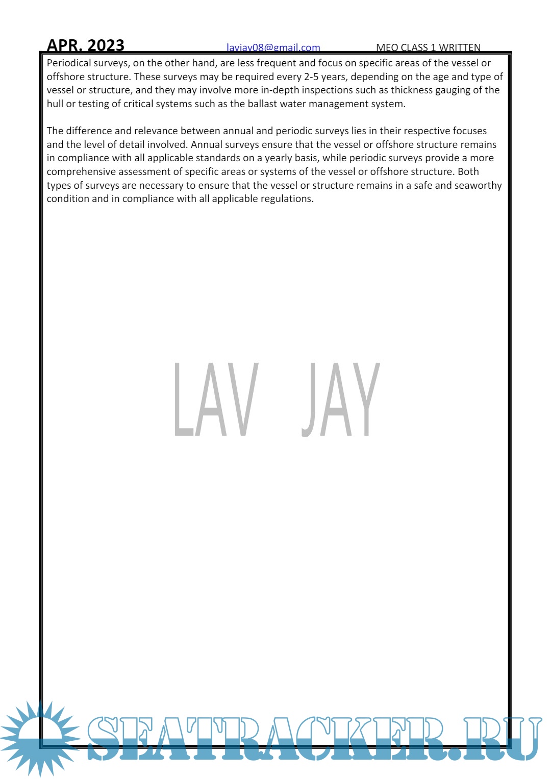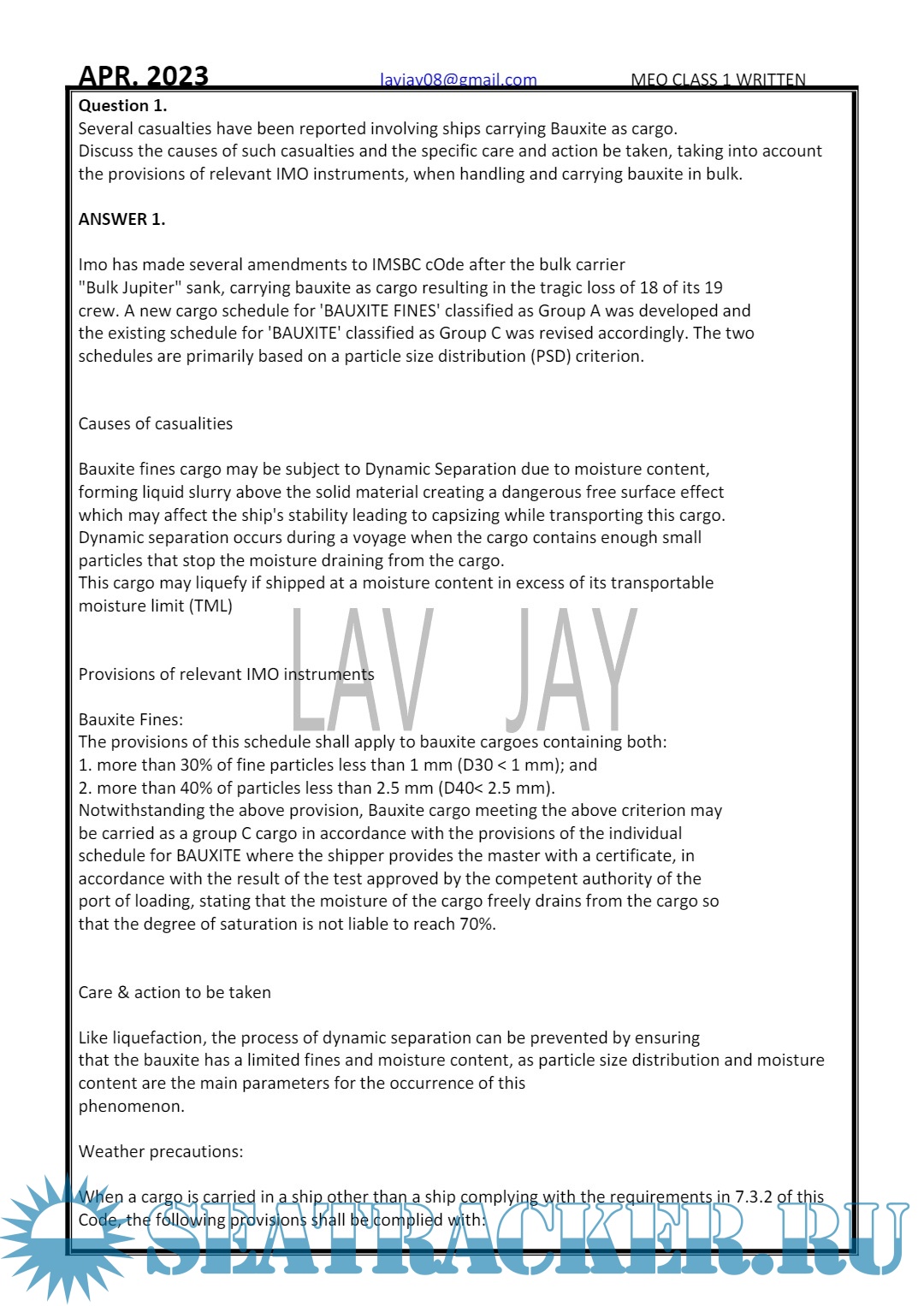 MEO Class I: Written Question and Answer (March) - Lav Jay [2023, PDF]