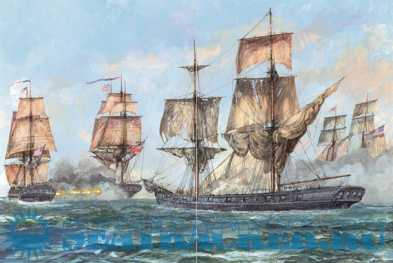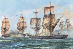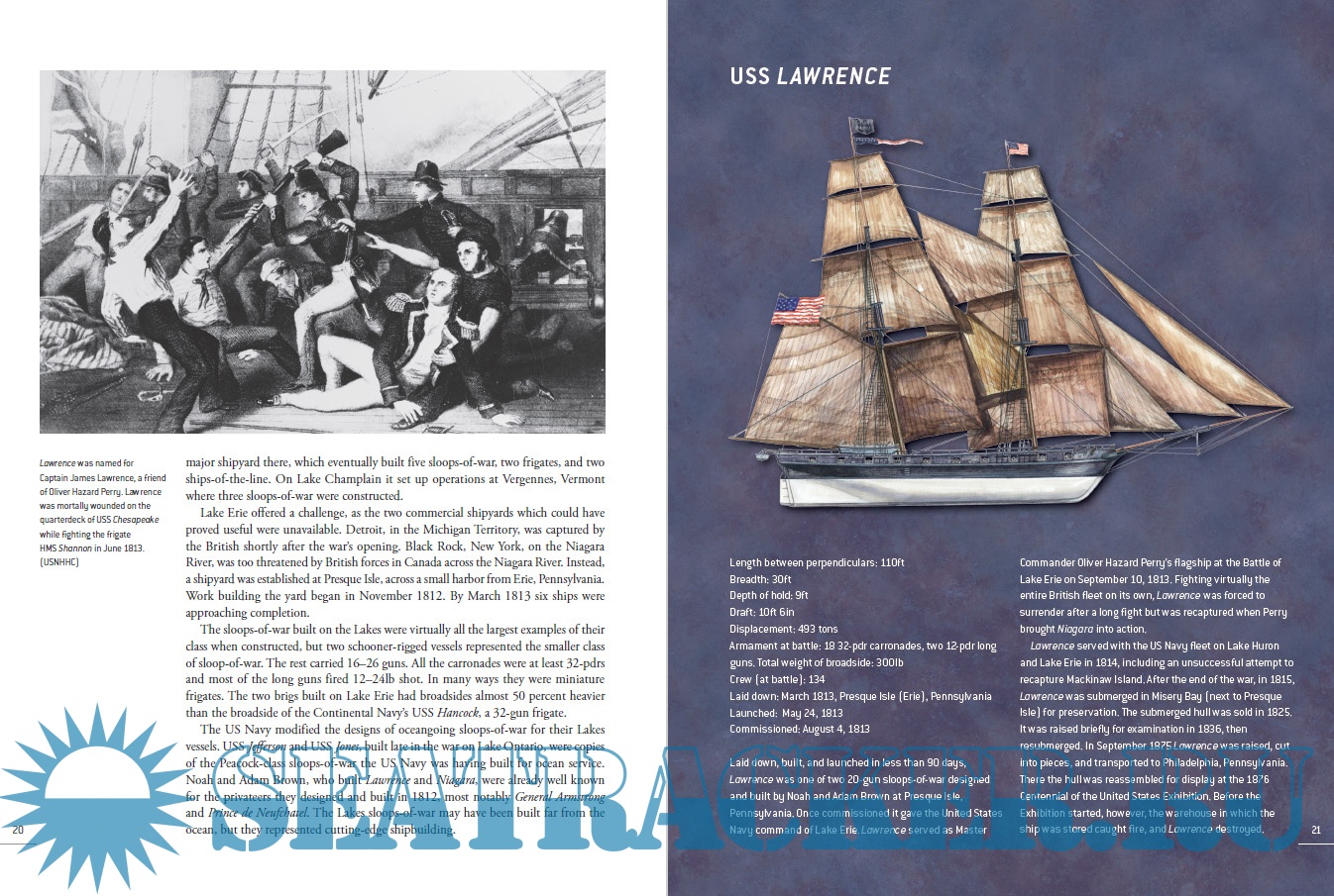 Description: Most of the critical naval fighting during the War of 1812 took place, not on the high seas, but on the inland lakes of North America: the Great Lakes and Lake Champlain. Carrying between 12 and 22 cannon, the British and American sloops-of-war were ship-rigged, brig-rigged or schooner-rigged vessels with their guns on a single deck. Actions often involved two ships facing each other broadside to broadside, the best example of which was the battle of Lake Erie in 1813 where HMS Detroit led a Royal Navy squadron against the USS Lawrence-led US Navy.