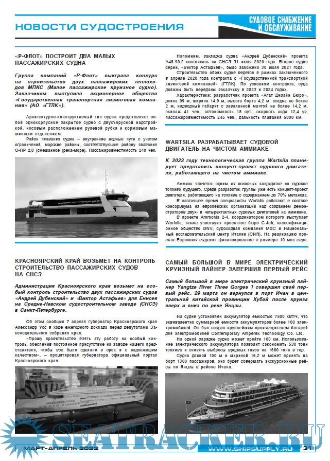 В журнале представлен весь спектр судового оборудования, комплектующих, запчастей, снабжения и материалов (с указанием контактных данных фирм производителей и поставщиков).