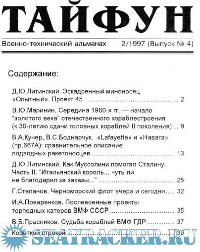 Год выпуска: 1997 Язык: русский Автор: П. Вербицкий (редактор) Жанр: Периодическое издание (журнал) Издание: 1997-02 Формат: PDF Качество: Отсканированные страницы Количество страниц: 43 Описание: «Морской сборник» – официальный ежемесячный журнал Военно-Морского Флота России. Он выходит в свет уже более 160 лет без перерыва на войны или революции.