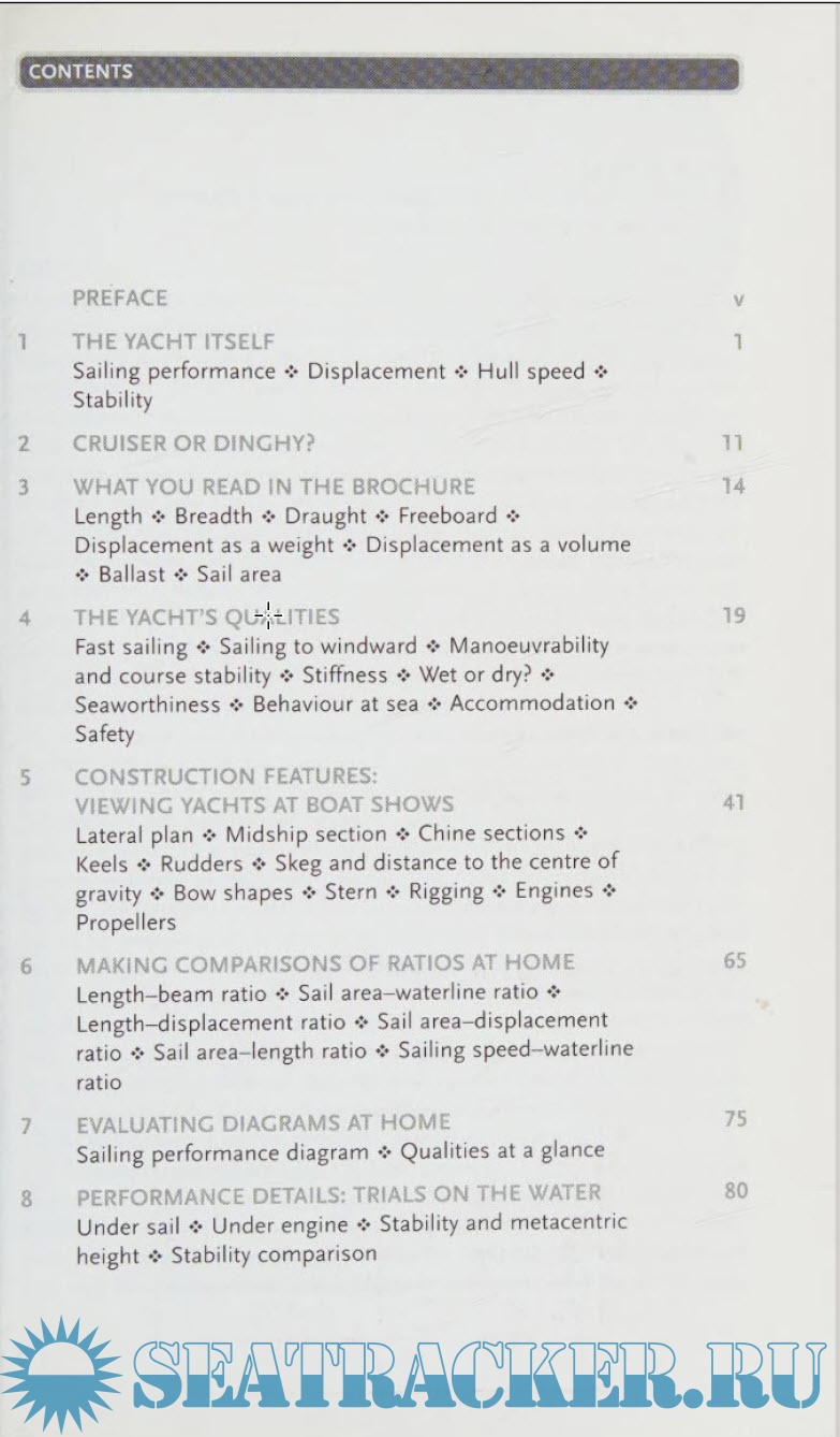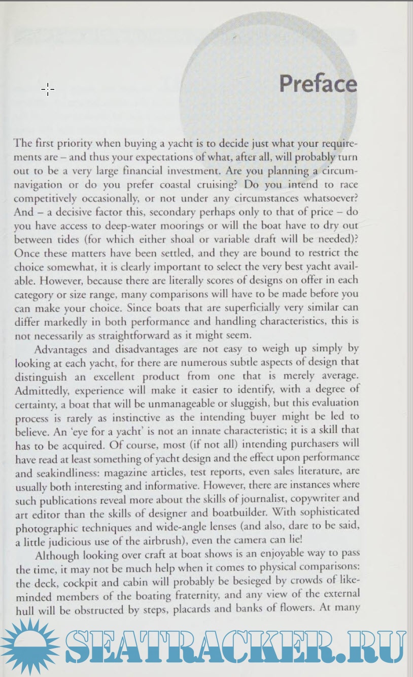 Year: 2006 Language: English Author: Joachim F. Muhs Genre: Reference book Publisher: Adlard Coles Nautical Edition: Second ISBN: 978-0713675818 Format: PDF Quality: Scanned pages Pages count: 109 Description: Most yachts at boat shows look almost identical - so how can a prospective buyer judge a yacht's sailing abilities from the sales brochure alone A variety of questions present themselves: Is she a fast or slow boat? Will she hold her course well Is she light on the helm? Does she ride the waves comfortably? Will she respond to a light breeze or does she prefer a heavy blow? Can she be sailed easily by a small family crew? This book aims to help interested buyers answer these questions and many more from the comfort of their home without even stepping aboard! 'A splendid little book which sets out to compress the knowledge of a lifetime into a very small space.' Guernsey Evening Press 'This is the text to take you beyond the catalogues, boat show displays and hype.' Lloyds List