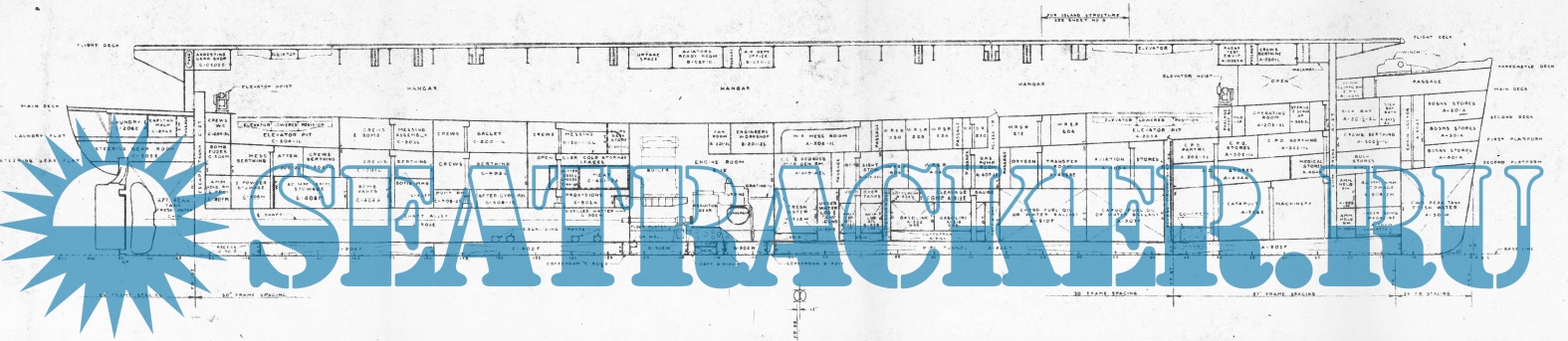 Архивные чертежи эскортного авианосца США CVE-53 USS Willapa (D79 - HMS Puncher) (тип Bogue) по состоянию на 1944 год.