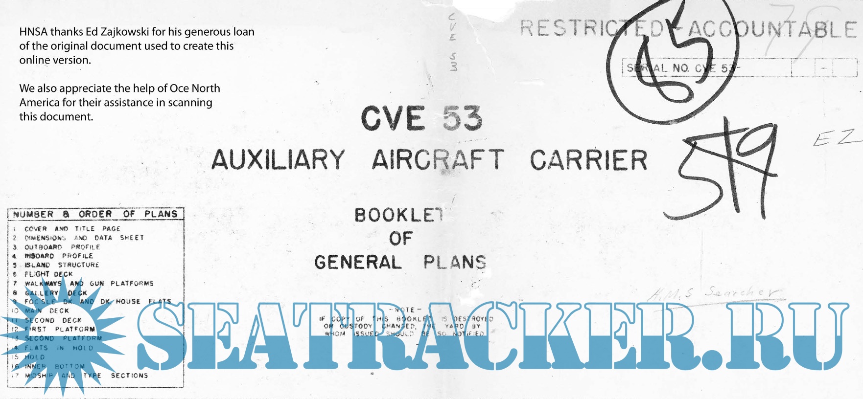17 листов архивных чертежей эскортного авианосца США CVE-53 USS Willapa (D79 - HMS Puncher) (тип Bogue) по состоянию на 1944 год.Скриншоты
