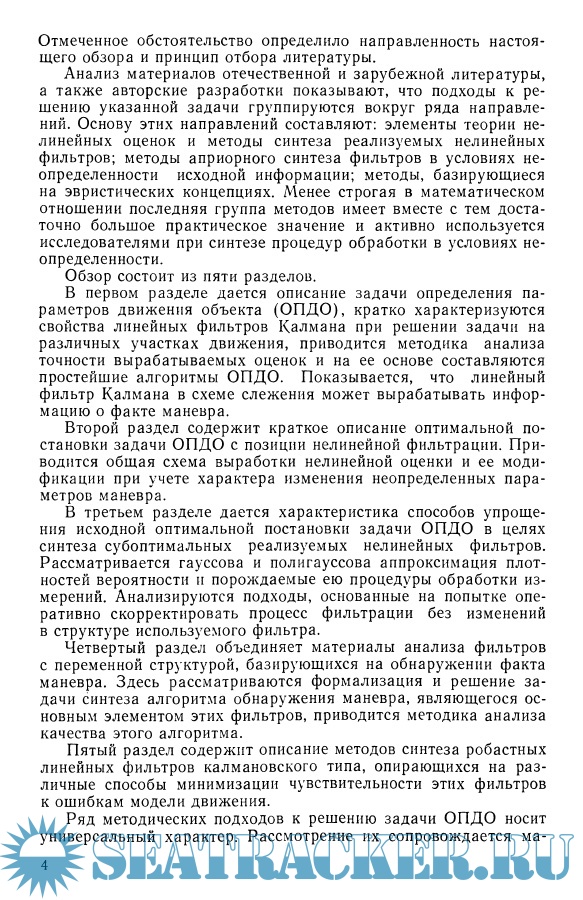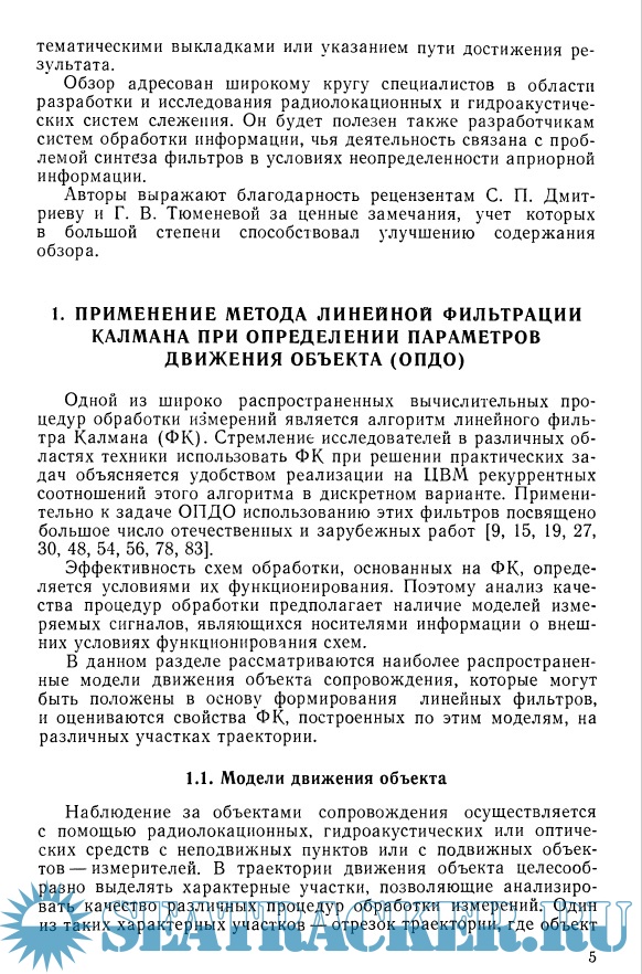 Обзор адресован научным и инженерно-техническим работникам, по роду своей деятельности связанным с проблематикой оценки параметров движения объектов, способных к маневрированию.