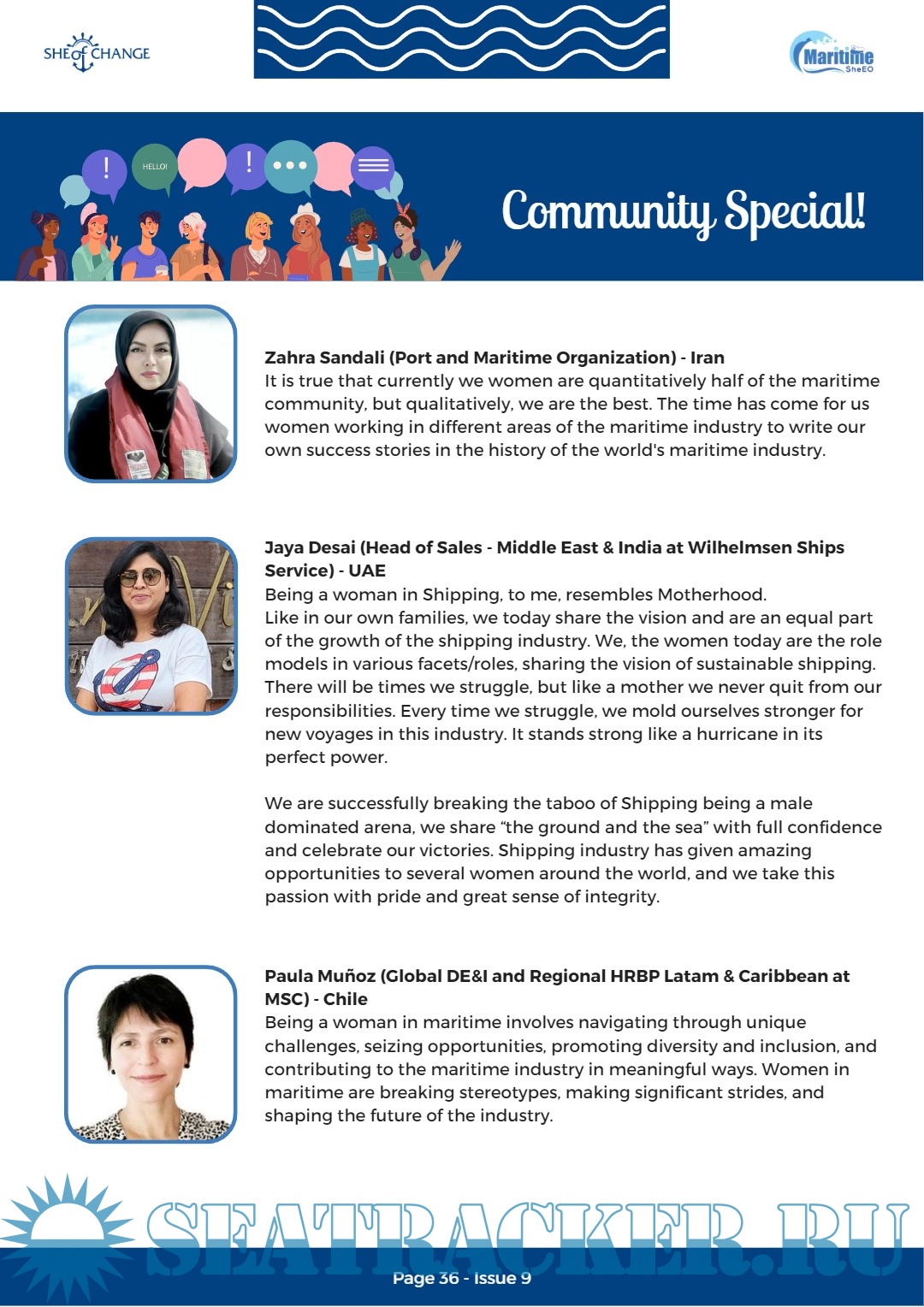 This issue commemorates the International Day for Women in Maritime, which is observed on May 18th, by highlighting the accomplishments and inspirational journeys of some exceptional women professionals, many of whom are women who have been appointed for the first time in roles previously held only by men in the shipping industry.