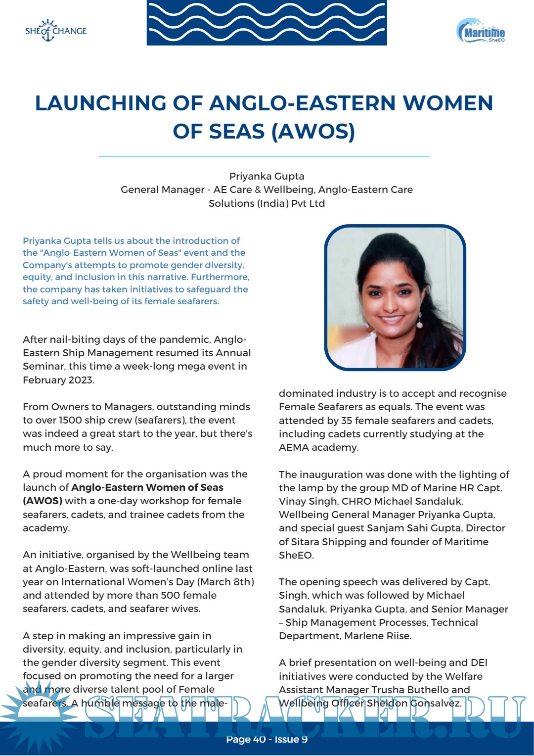 A report on the debut of AWOS, as well as the company's efforts and measures to develop a healthy and inclusive environment for its women seafarers, has been covered and is a must read.
