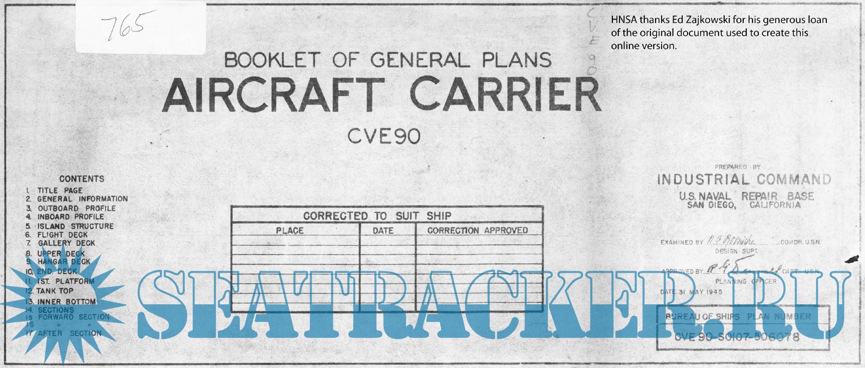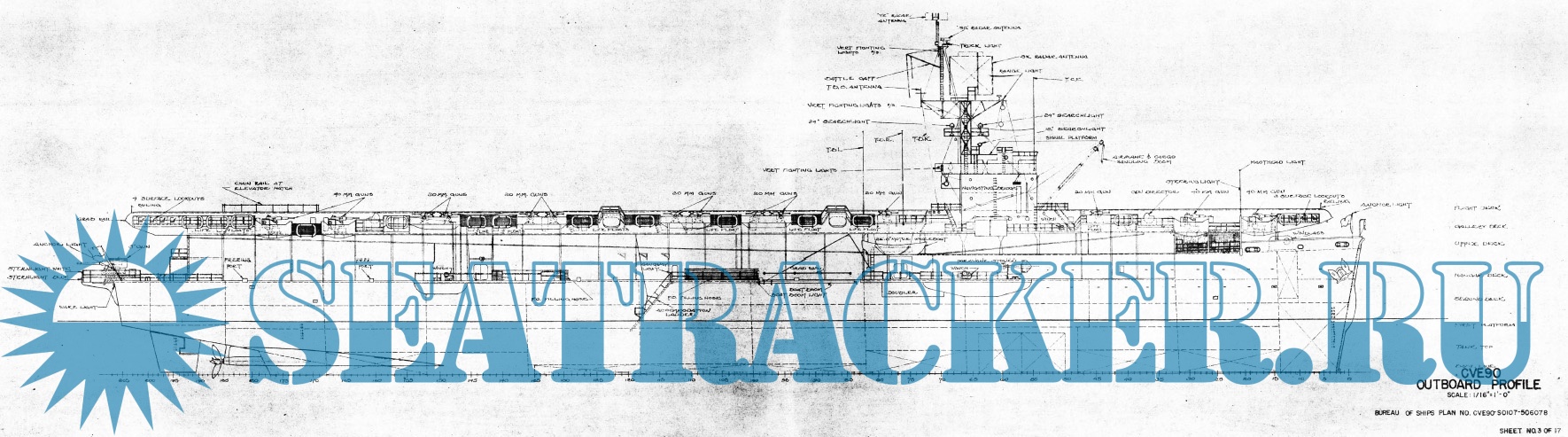 17 листов архивных чертежей эскортного авианосца США CVE-90 - USS Thetis Bay (тип Casablanca) на 1945 годСкриншоты