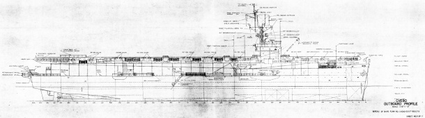 17 листов архивных чертежей эскортного авианосца США CVE-90 - USS Thetis Bay (тип Casablanca) на 1945 год