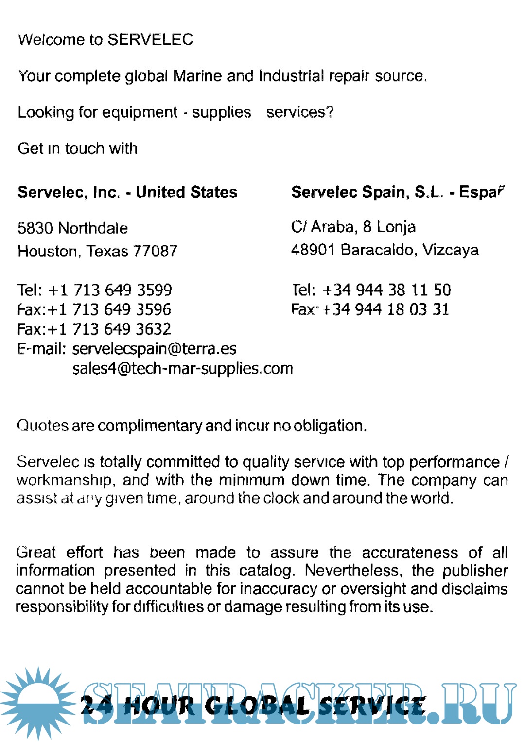 Description: Industrial / Marine Electrical Catalogue. Servelec -Spain.