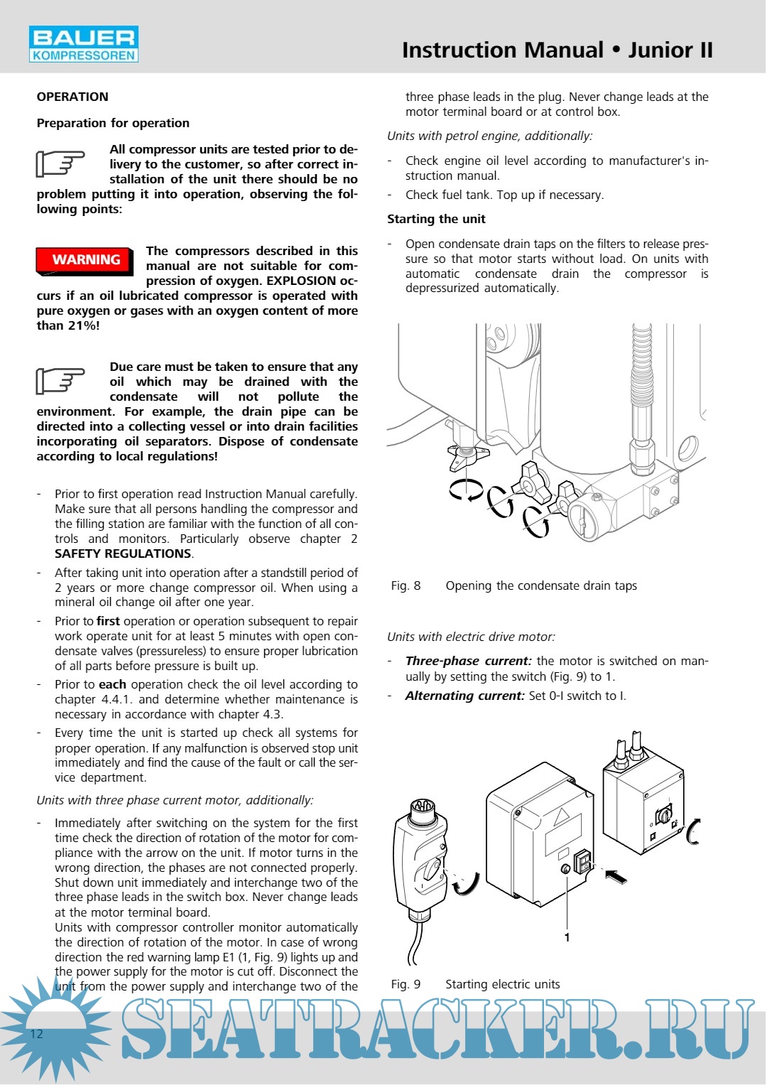 Bauer Compressor: Junior II - Instruction Manual and Spare Parts Catalog