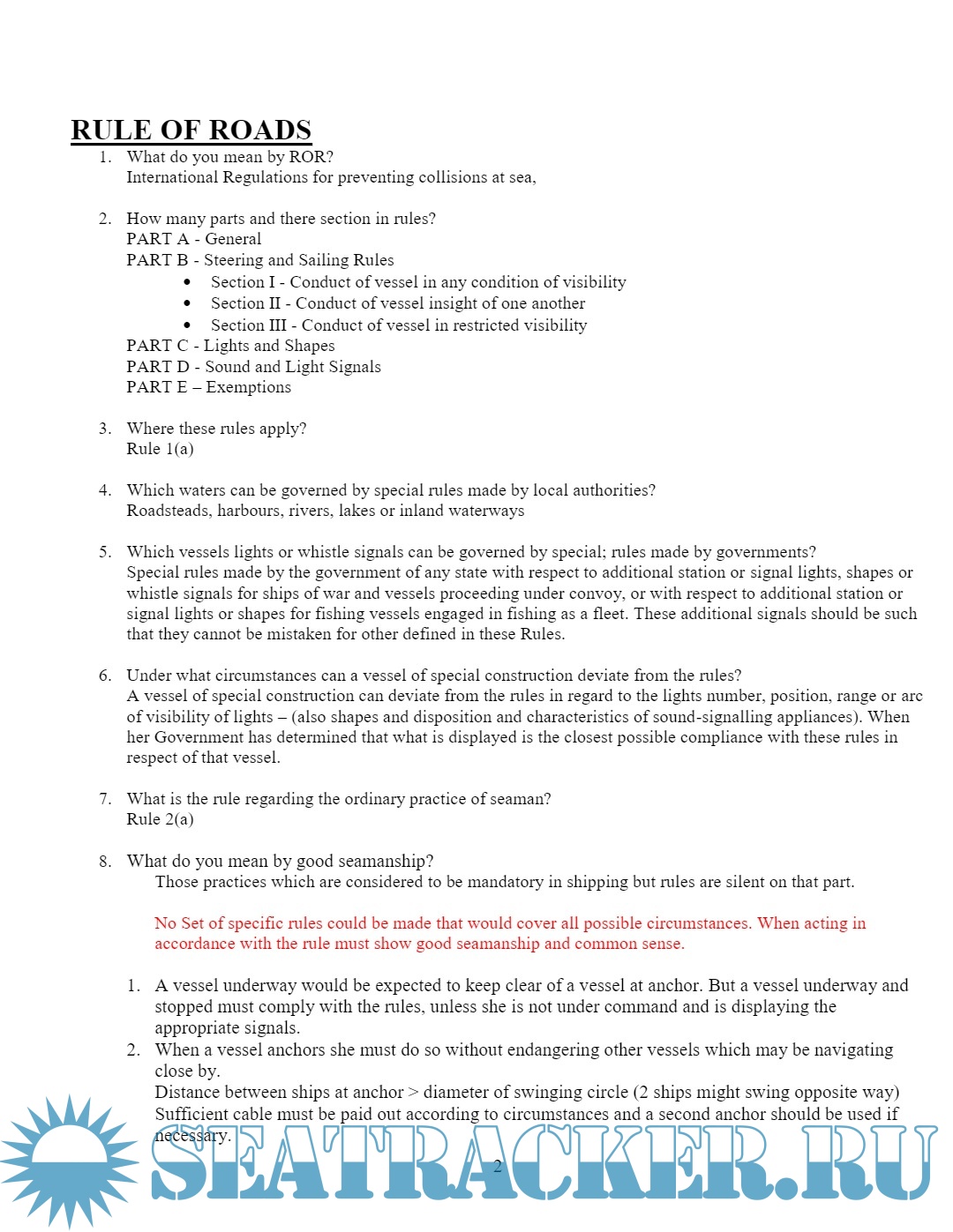 Safety Notes for Phase II (Chief Mate F.G.) Mercantile Marine Department (MMD), India Examinations.…
