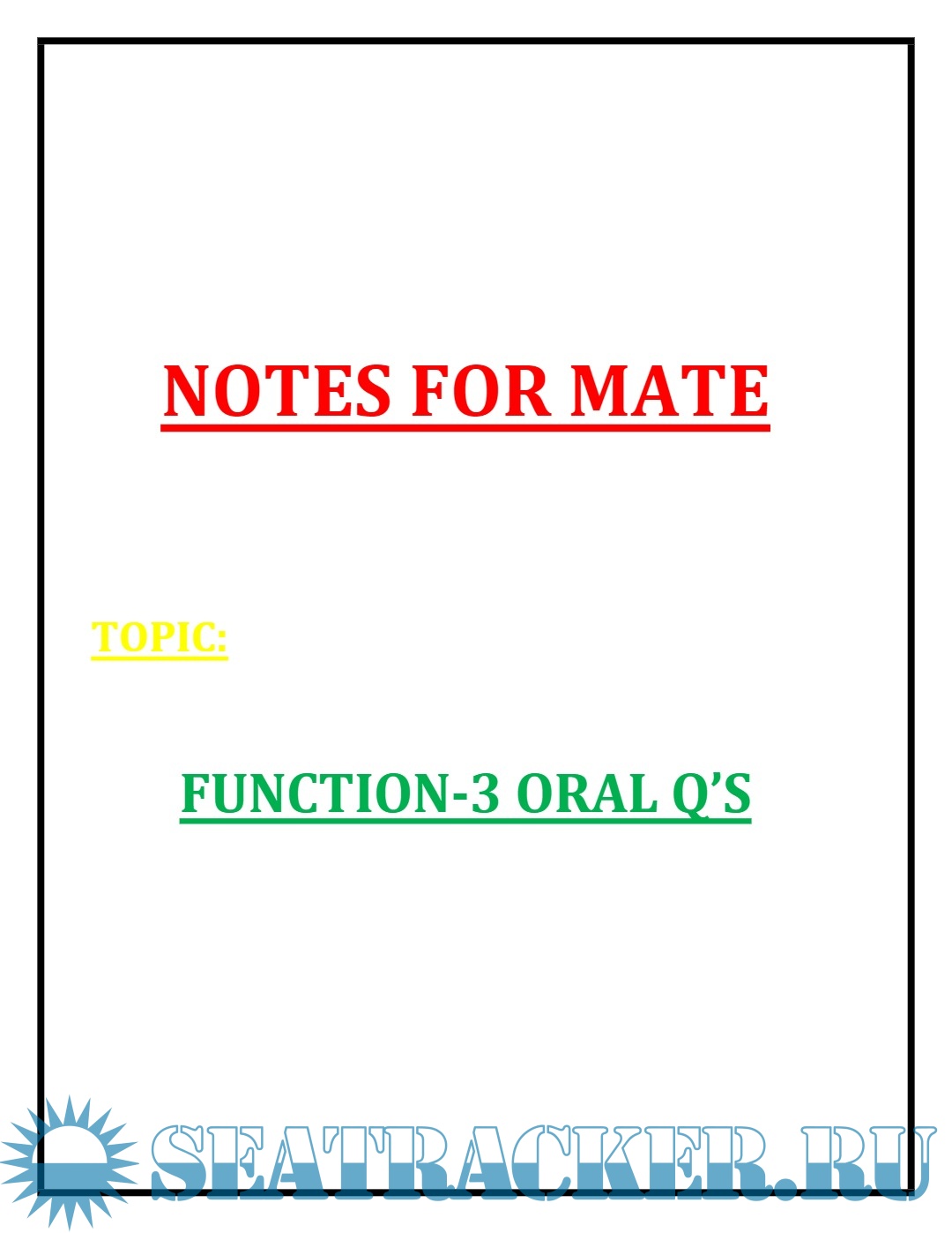Notes for the Second Mate: Function 1 Questions - Oral Need [20xx, PDF]