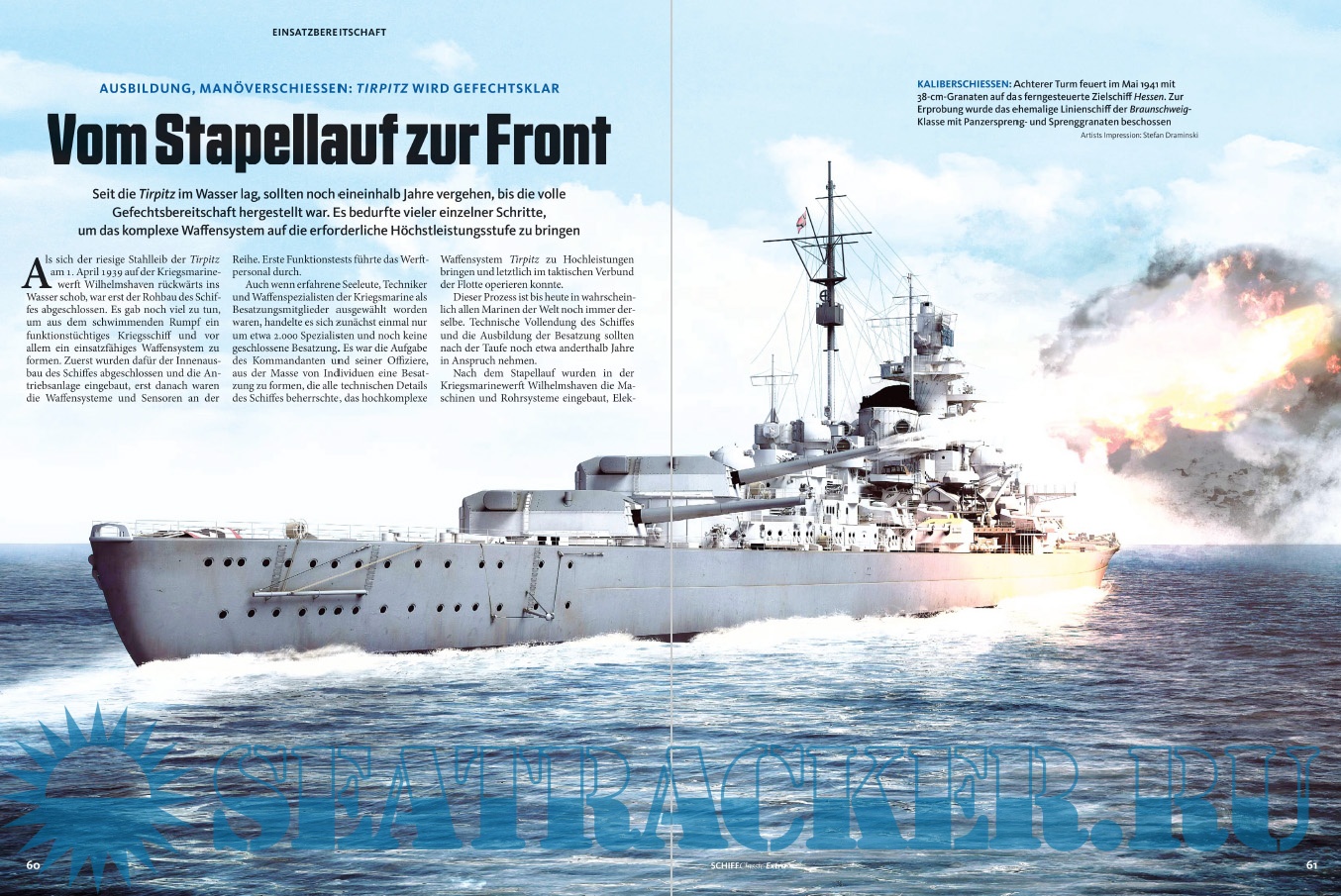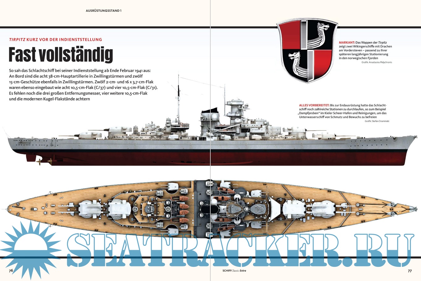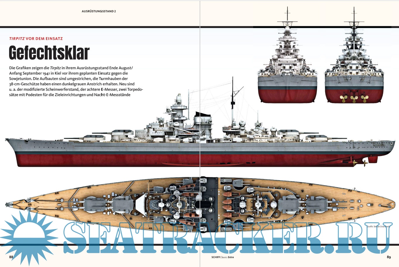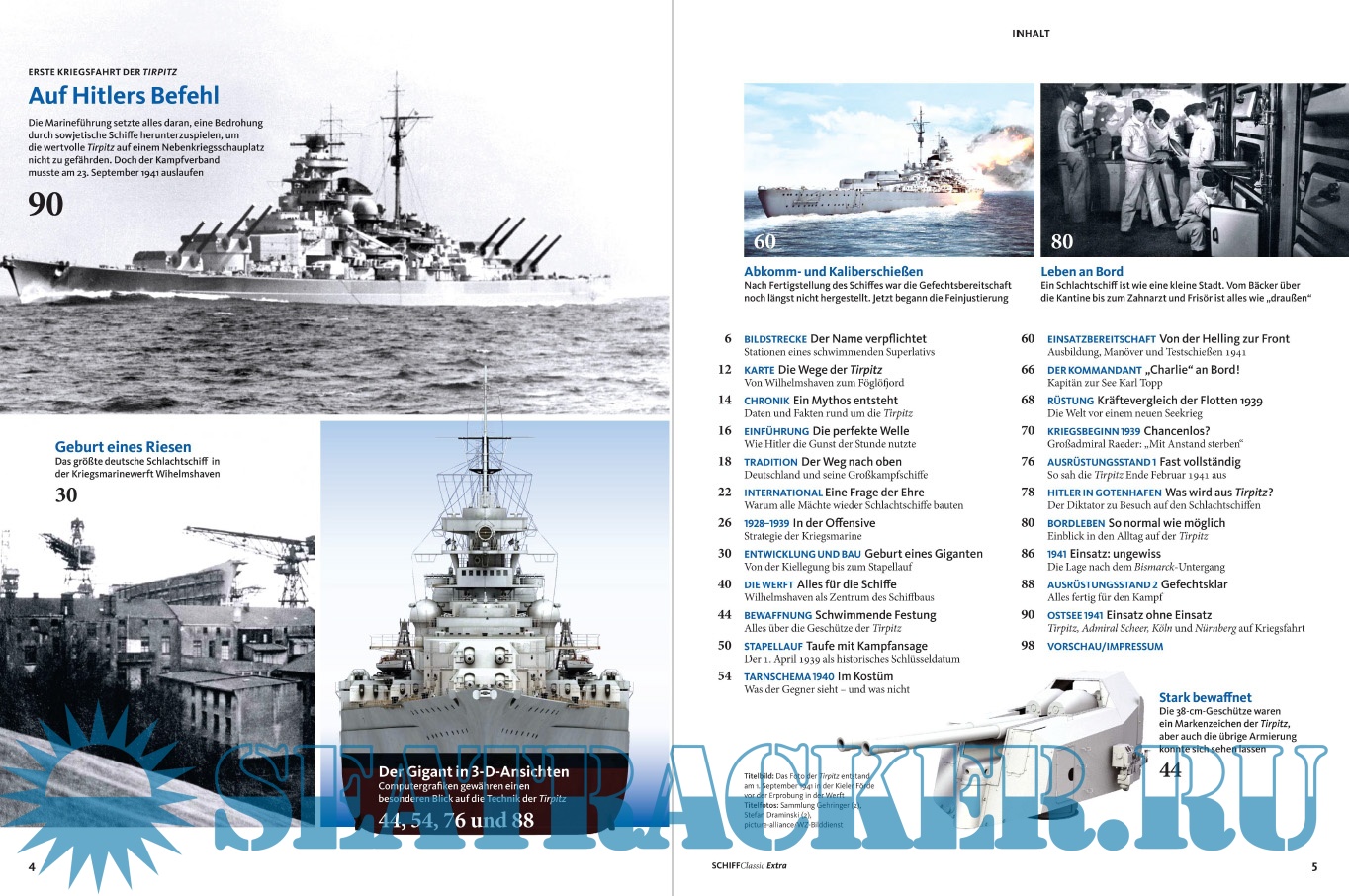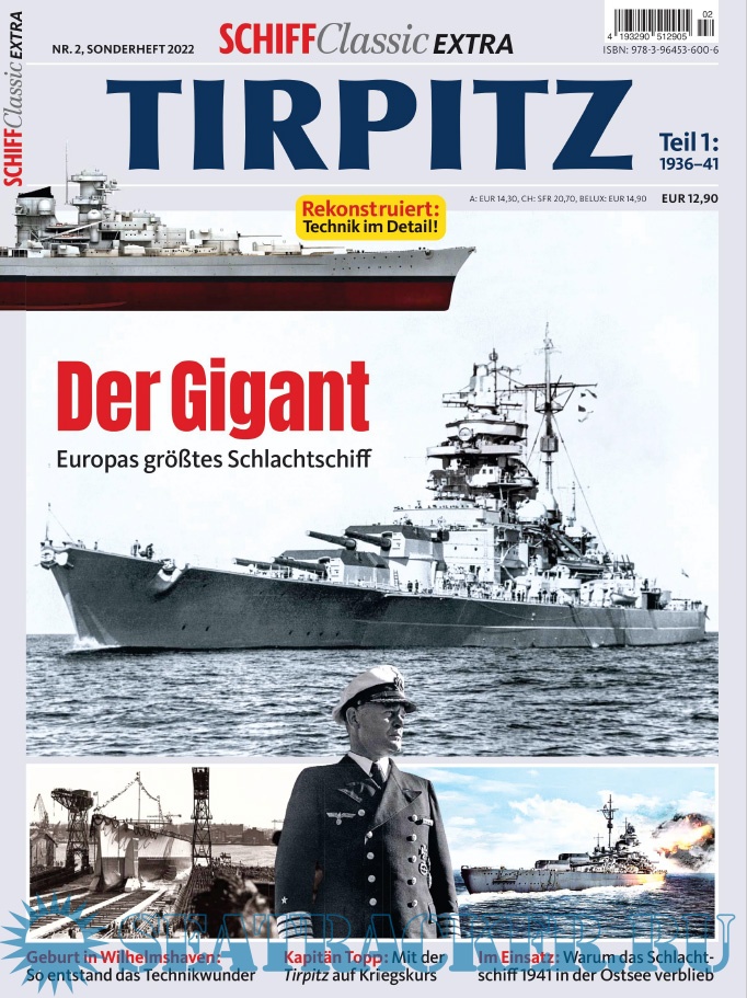 Description: Die Tirpitz war das Schwesterschiff der berühmten Bismarck und Europas größtes Schlachtschiff. Schiff Classic Extra widmet sich diesem Kampfkoloss in einer zweibändigen Ausgabe. Teil 1 reicht von 1936 bis 1941 und dreht sich um Konzeption, Bau und erste Einsätze. 3D-Illustrationen zeigen Technik in allen Details, während eine Fülle kaum bekannter Fotos die Entstehung der Tirpitz und die Verhältnisse an Bord vor Augen führen.