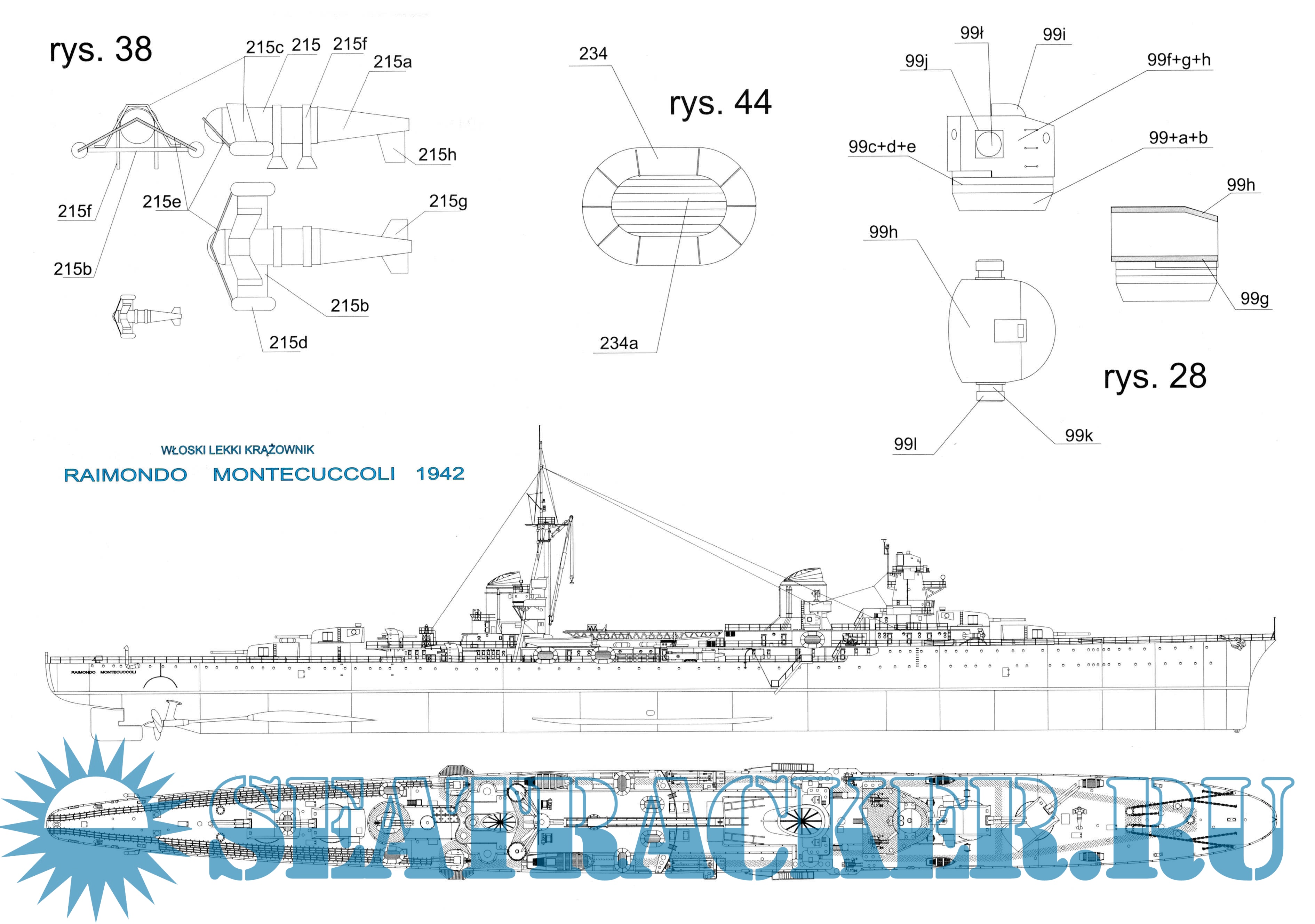 29листов цветных выкроек и инструкций по изготовления модели из бумаги итальянского лёгкого крейсера " Raimondo Montecuccoli" в масштабе 1:200Скриншоты