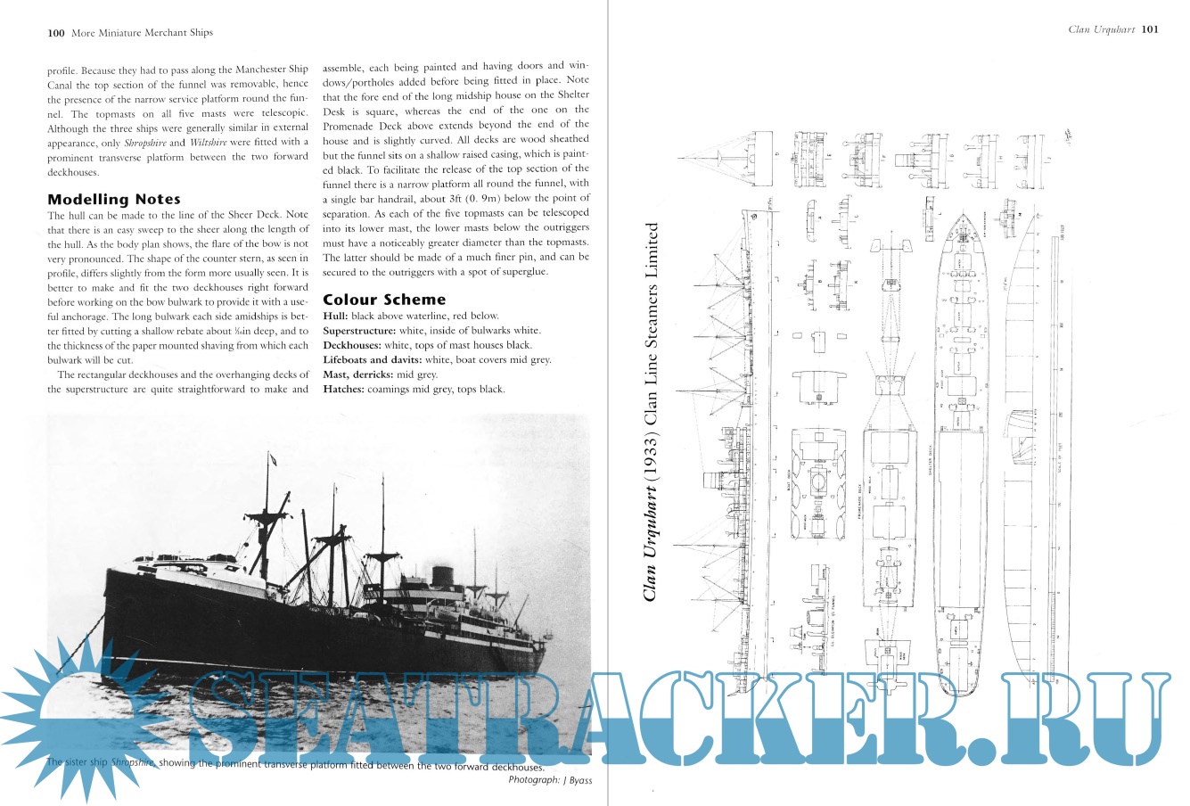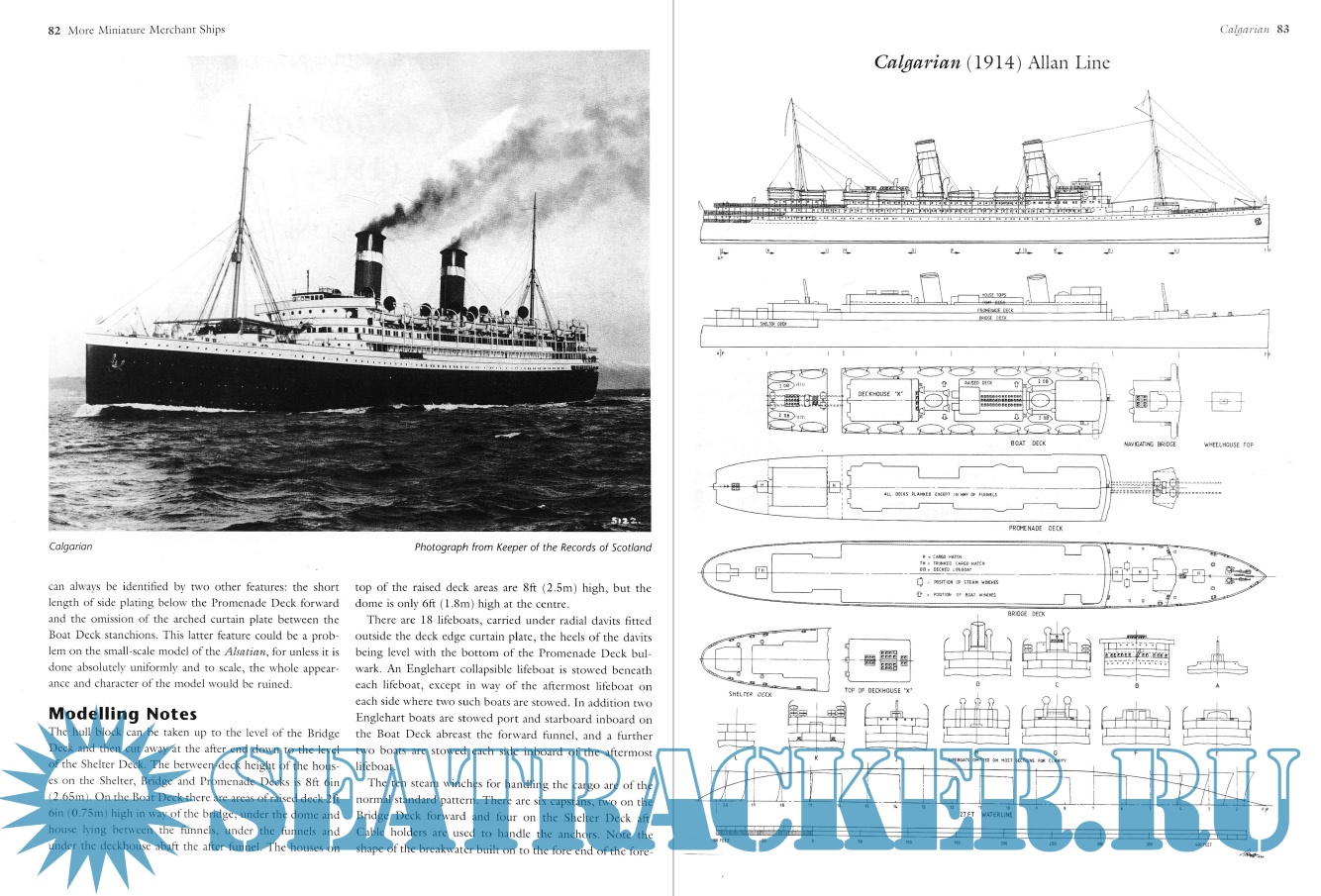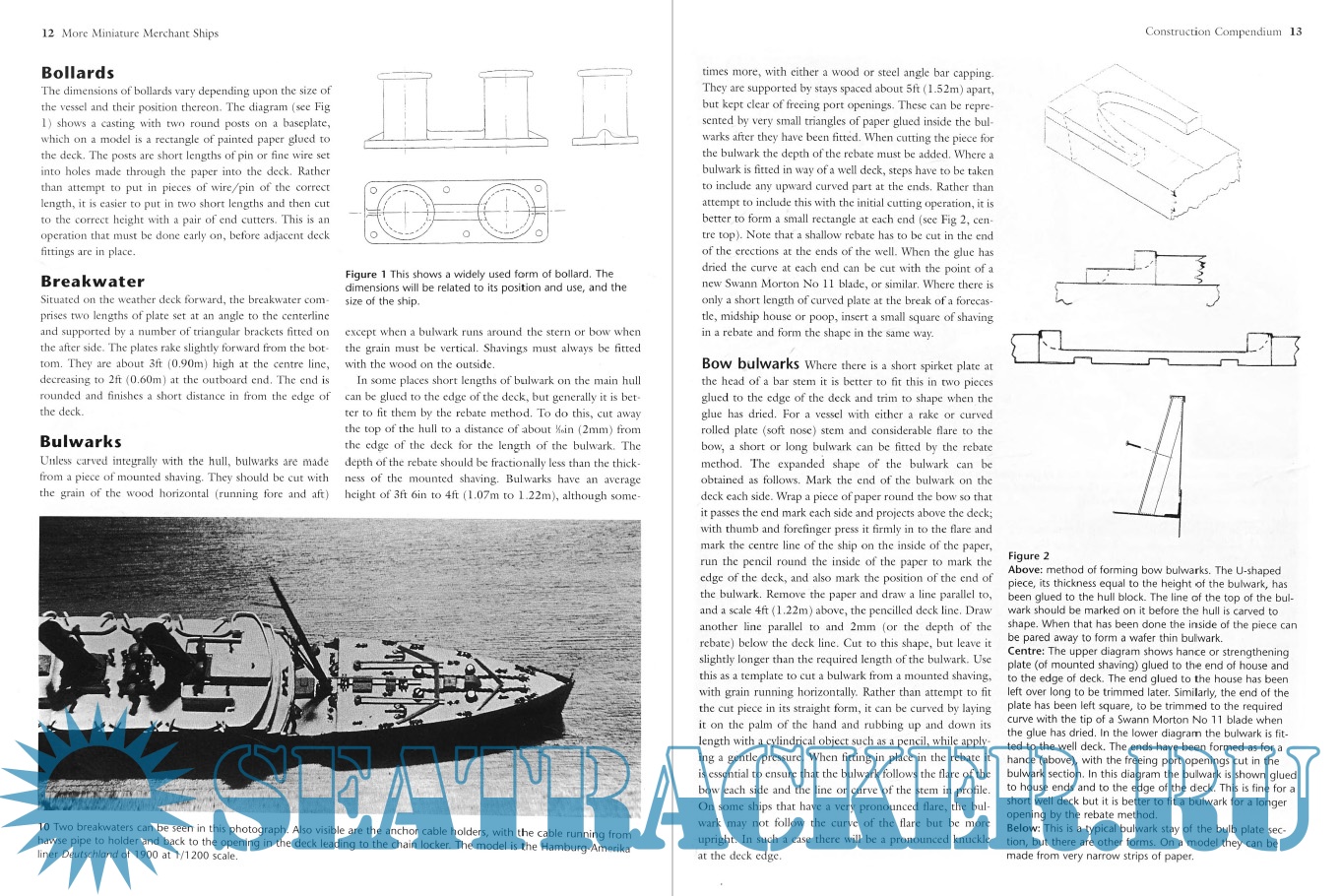 Year: 2003 Language: english Author: John Bowen Genre: Guide Publisher: Conway Maritime Press Format: PDF Quality: Scanned pages Pages count: 216 Description: John Bowen brings his knowledge and expertise of waterline ship modeling to a second volume of miniature merchant ships, including examples such as Haverford (1901), Carpathia (1903), Oronsay (1925) and Braemar Castle (1952). The book opens with a section giving advice on initial preparations - finding and using plans, suitable materials and tools. This section also presents an alphabetical list of the principal fittings on a ship (those that would be included on this type of model) - hatches, winches, capstans, anchors, etc - with details and diagrams on how to make them. Section II comprises 30 sets of plans of ships built between 1900 and 1969. These are accompanied with at least one photograph of the ship, a full specification, brief history, and notes on essential constructional details, including color scheme. Readers will recognize the authoritative yet approachable style John has brought to several ship modeling titles, which will appeal to both beginners and more experienced modelers. A companion volume to the highly successful Miniature Merchant Ships, More Miniature Merchant Ships includes 30 1/1200 scale plans of liners, cargo ships and passenger cargo ships, each supplied with comprehensive modeling notes. More than 60 photographs of the prototype ships underway supply detailed pictorial references. This book, like Miniature Merchant Ships, is an essential addition to the library of any ship modeler.