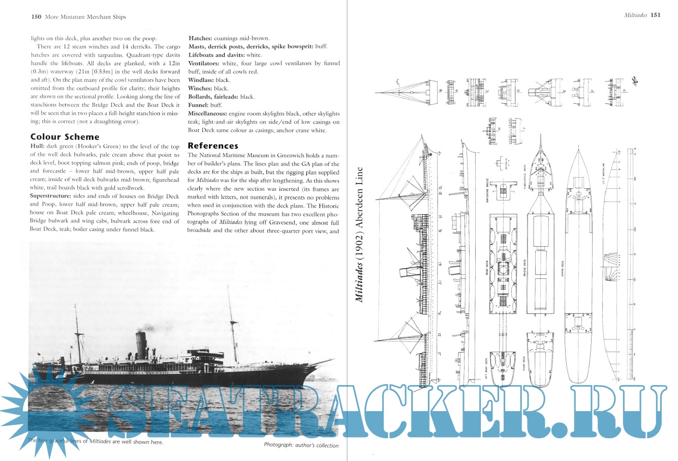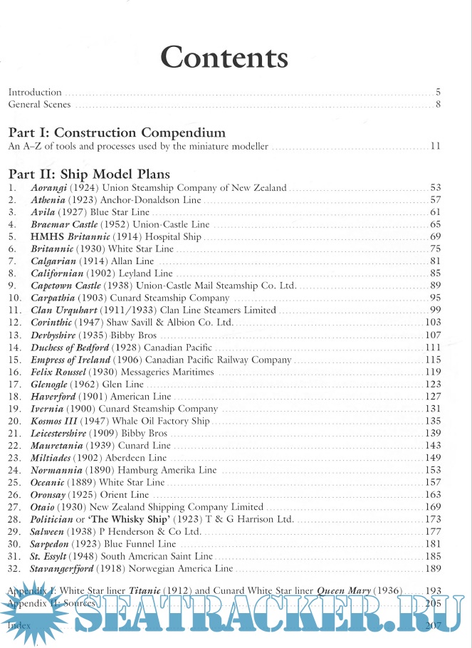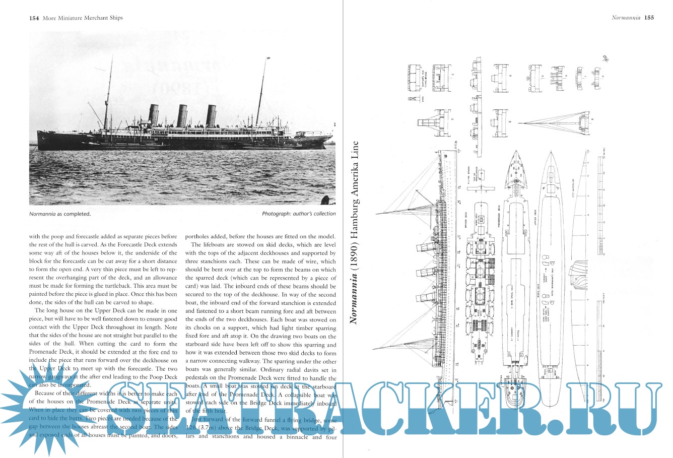 Year: 2003 Language: english Author: John Bowen Genre: Guide Publisher: Conway Maritime Press Format: PDF Quality: Scanned pages Pages count: 216 Description: John Bowen brings his knowledge and expertise of waterline ship modeling to a second volume of miniature merchant ships, including examples such as Haverford (1901), Carpathia (1903), Oronsay (1925) and Braemar Castle (1952). The book opens with a section giving advice on initial preparations - finding and using plans, suitable materials and tools. This section also presents an alphabetical list of the principal fittings on a ship (those that would be included on this type of model) - hatches, winches, capstans, anchors, etc - with details and diagrams on how to make them. Section II comprises 30 sets of plans of ships built between 1900 and 1969. These are accompanied with at least one photograph of the ship, a full specification, brief history, and notes on essential constructional details, including color scheme. Readers will recognize the authoritative yet approachable style John has brought to several ship modeling titles, which will appeal to both beginners and more experienced modelers. A companion volume to the highly successful Miniature Merchant Ships, More Miniature Merchant Ships includes 30 1/1200 scale plans of liners, cargo ships and passenger cargo ships, each supplied with comprehensive modeling notes. More than 60 photographs of the prototype ships underway supply detailed pictorial references. This book, like Miniature Merchant Ships, is an essential addition to the library of any ship modeler.