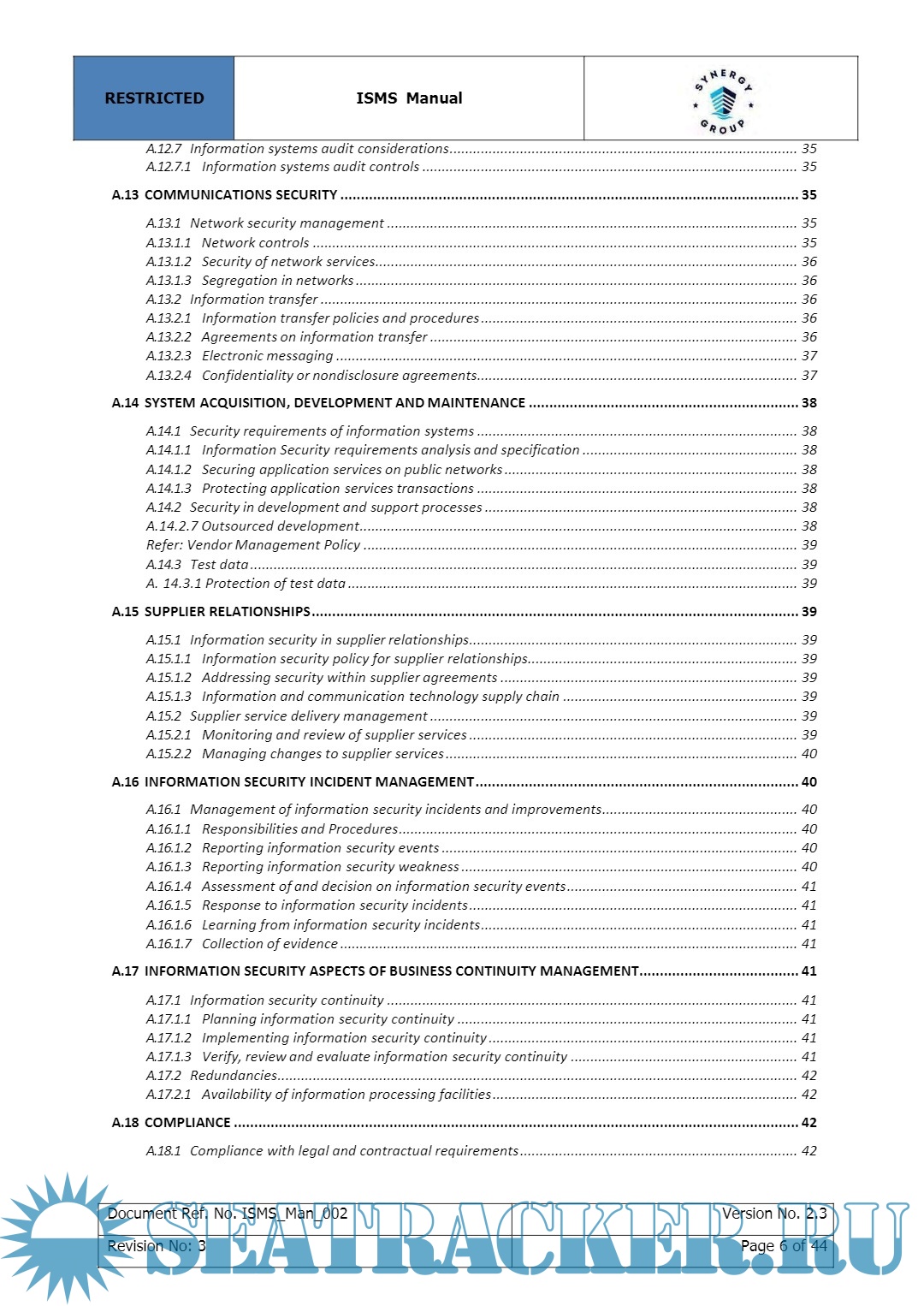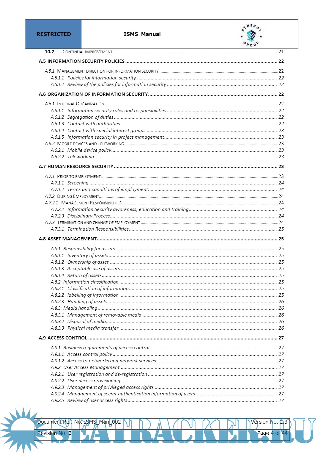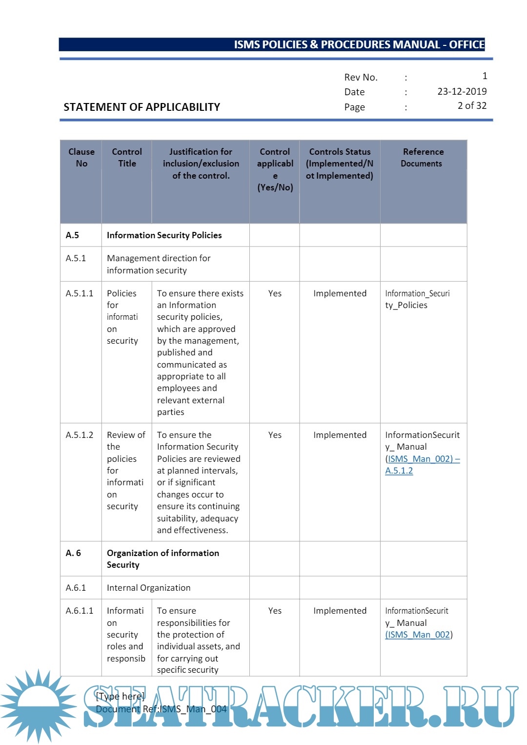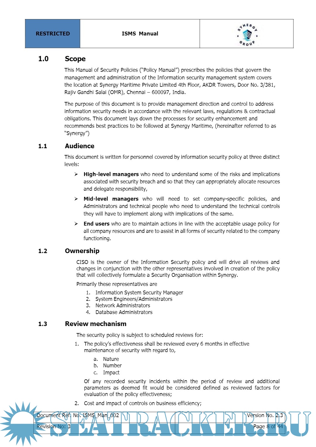 Year: 2022 Language: english Author: Synergy Maritime Pvt. Ltd. Genre: Manual Edition: 2 | December Format: PDF Quality: eBook Pages count: 404 Description: The purpose of this document is to provide management direction and control to address information security needs in accordance with the relevant laws, regulations & contractual obligations. This document lays down the processes for security enhancement and recommends best practices to be followed.