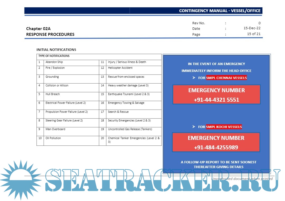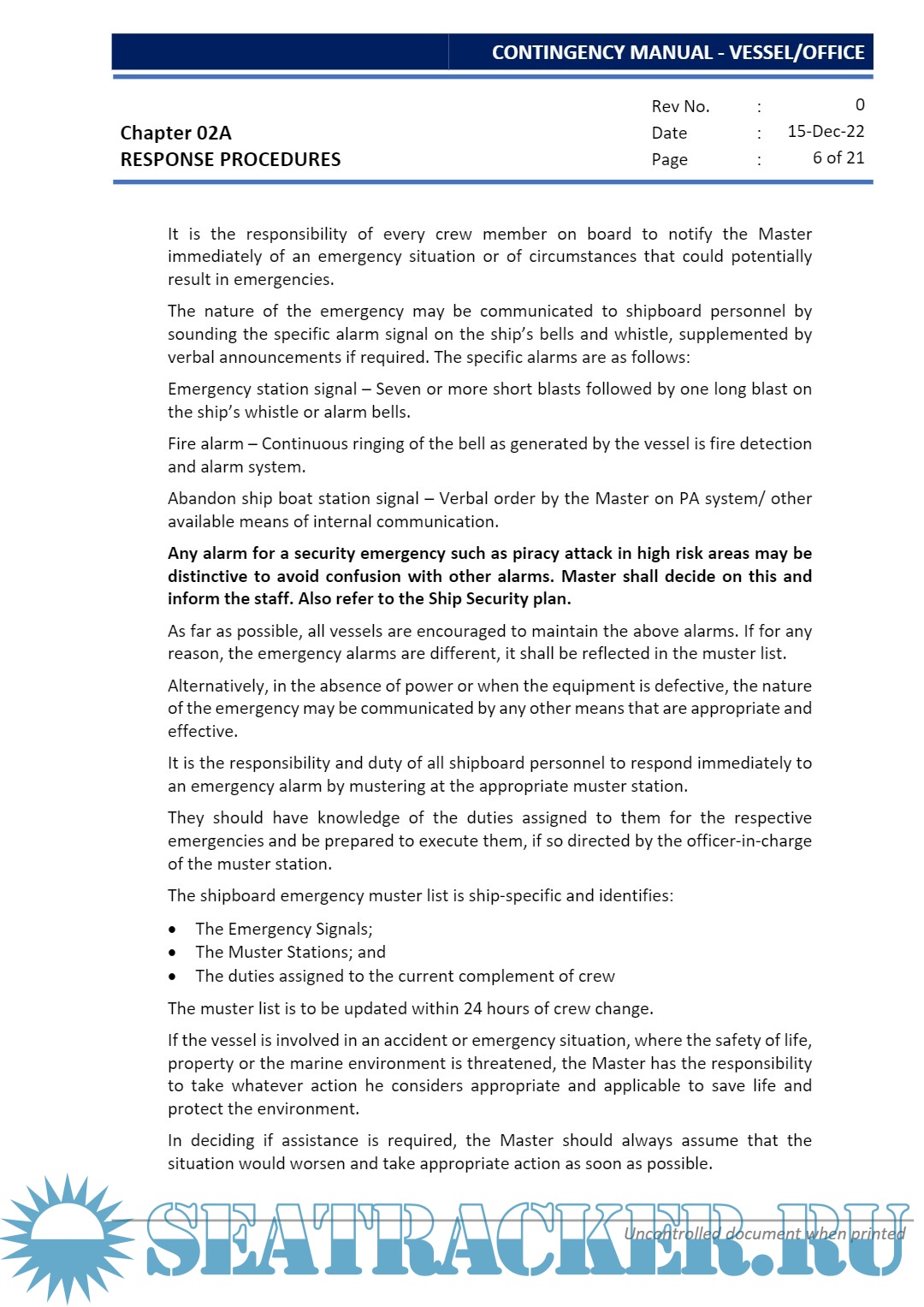 Description: The Contingency Manual provides guidelines and instructions that assist in making an efficient response to emergency situations onboard ships.