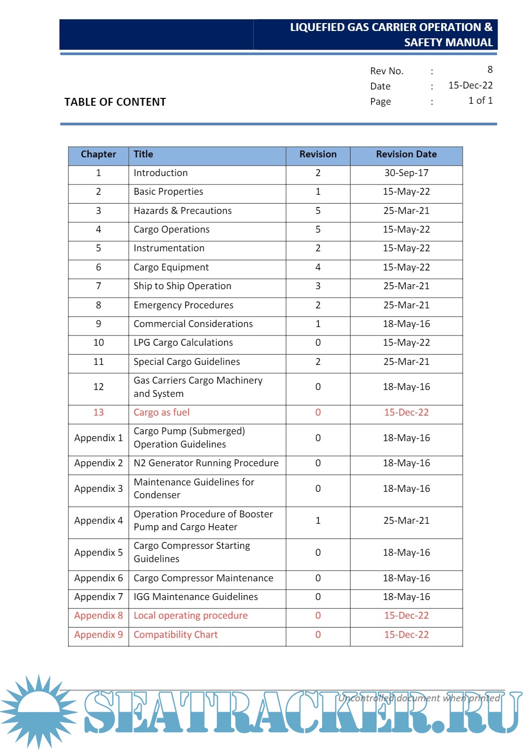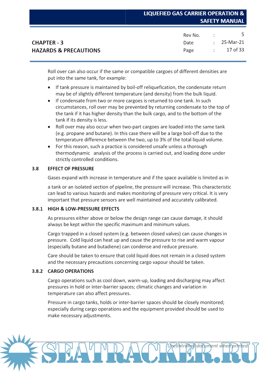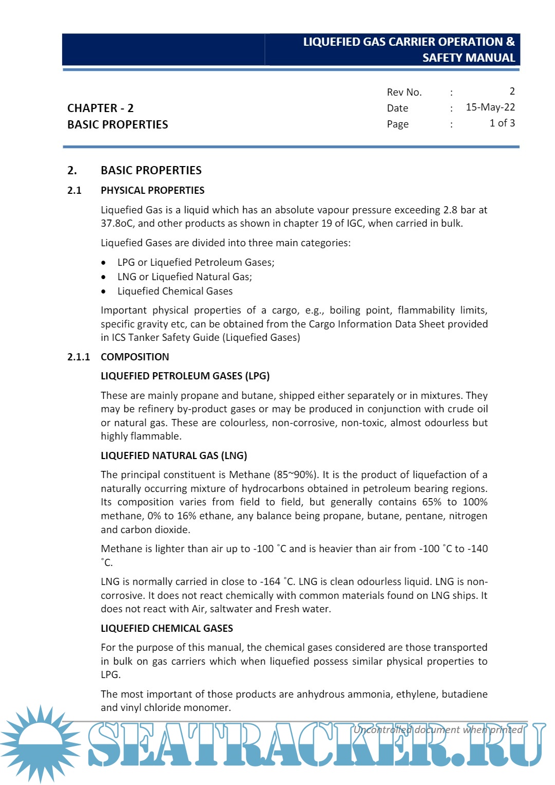 Description: This Manual is issued to assist all personnel involved in the operation of Liquefied Gas Carriers carrying Liquefied Petroleum and Liquefied Chemical Gases, to carry out their duties in a safe and efficient manner.