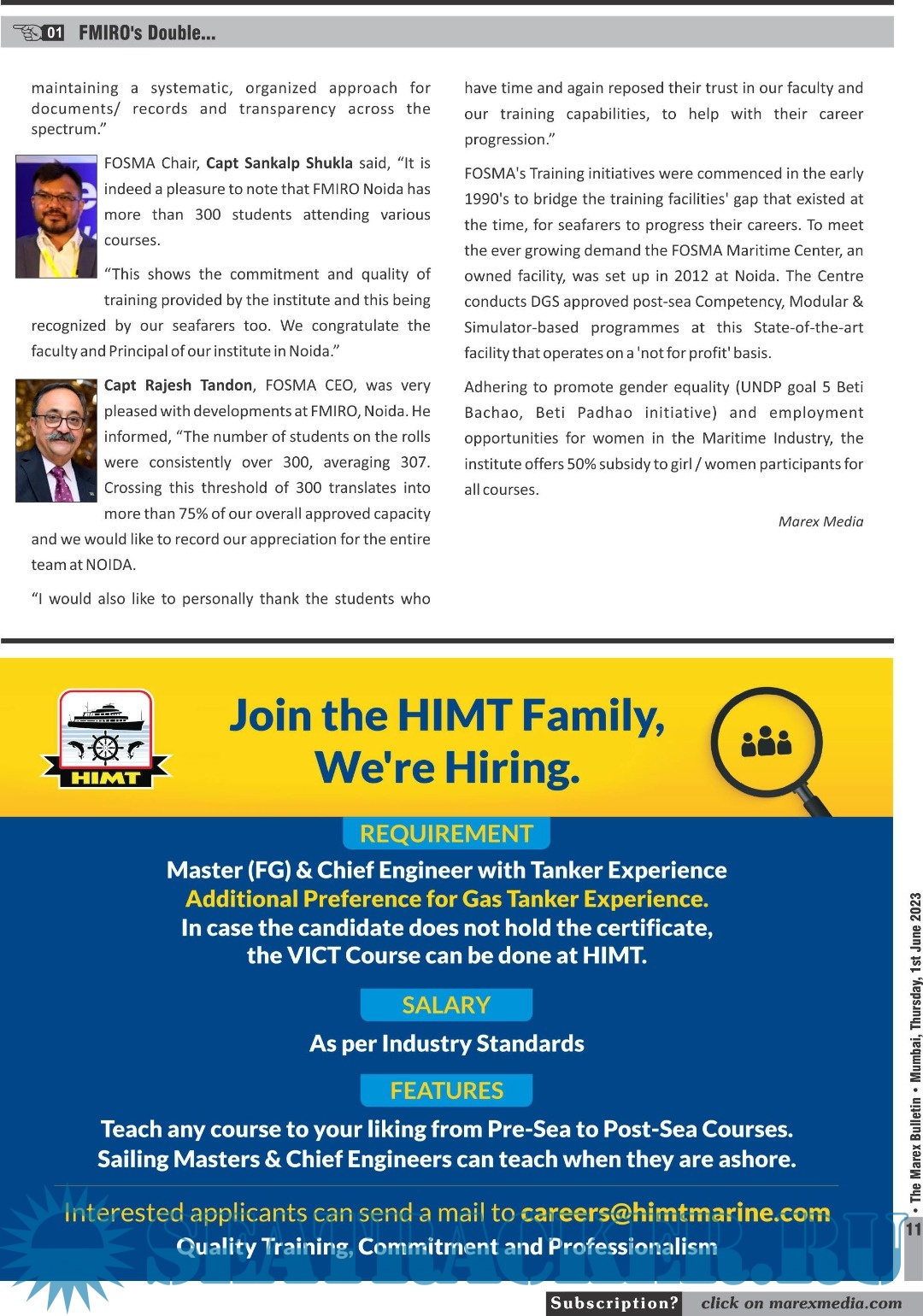 Description: The No 1 Twice weekly employment magazine for Seafarers.The Leading magazine for seafarers to locate Ship-board Employment opportunities, Training Institutes, Shipping companies.
