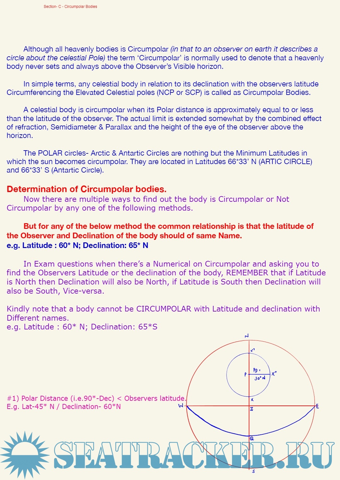 Navigation - Section C: Circumpolar Bodies solved from Past Question Papers of Mercantile Marine Department (MMD), India Examinations for Phase I (Chief Mate F.G.)