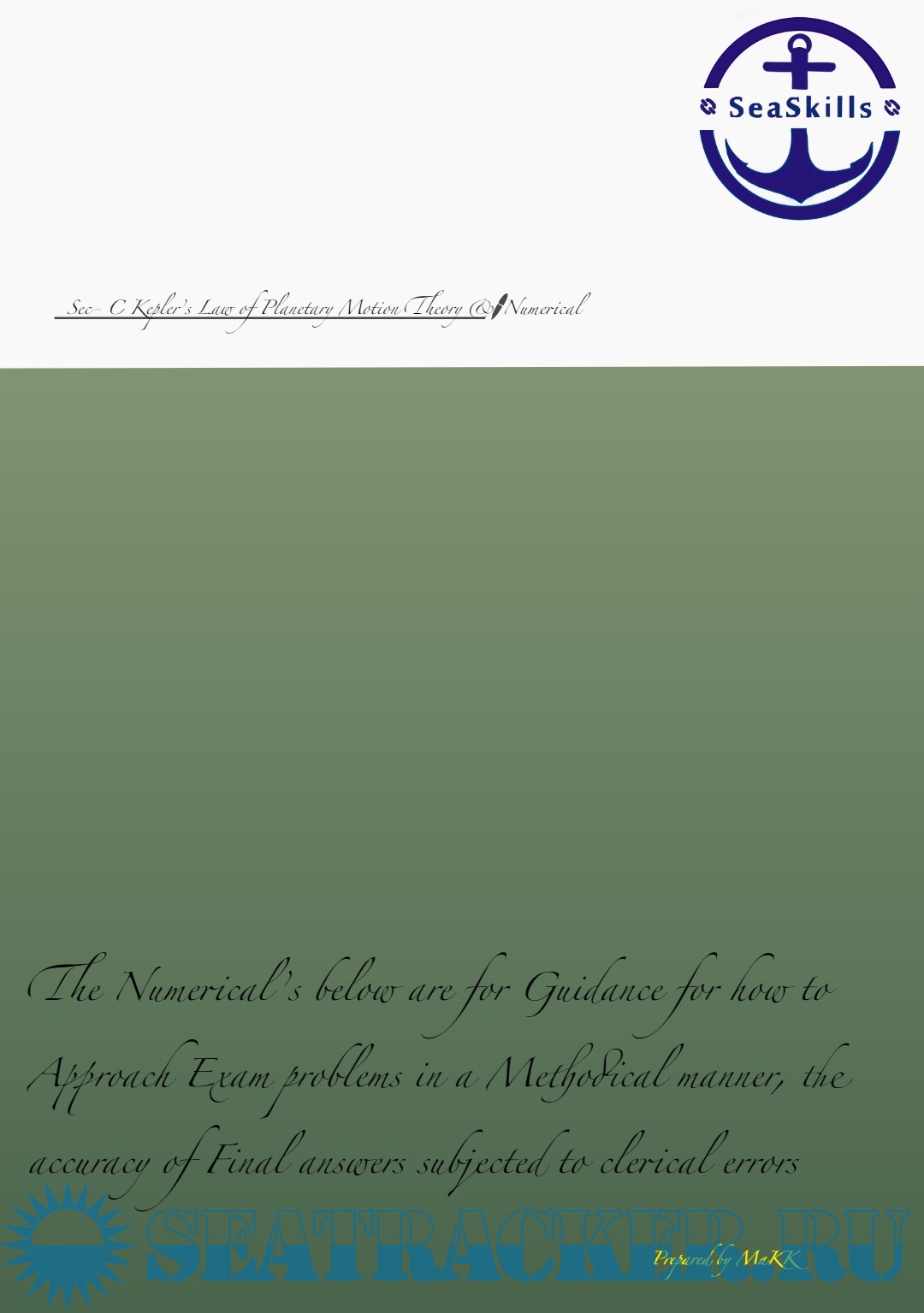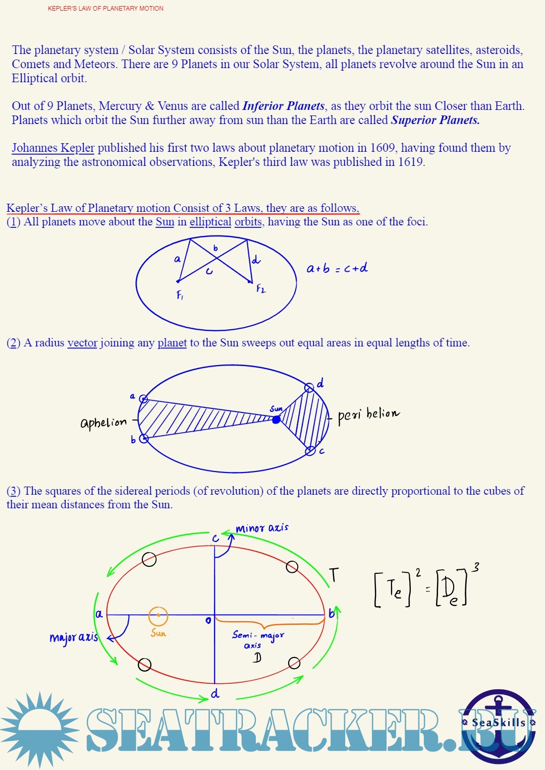 Navigation - Section C: Kepler's Law of Planetary Motion (Theory and Numerical) from Past Question Papers of Mercantile Marine Department (MMD), India Examinations for Phase I (Chief Mate F.G.)