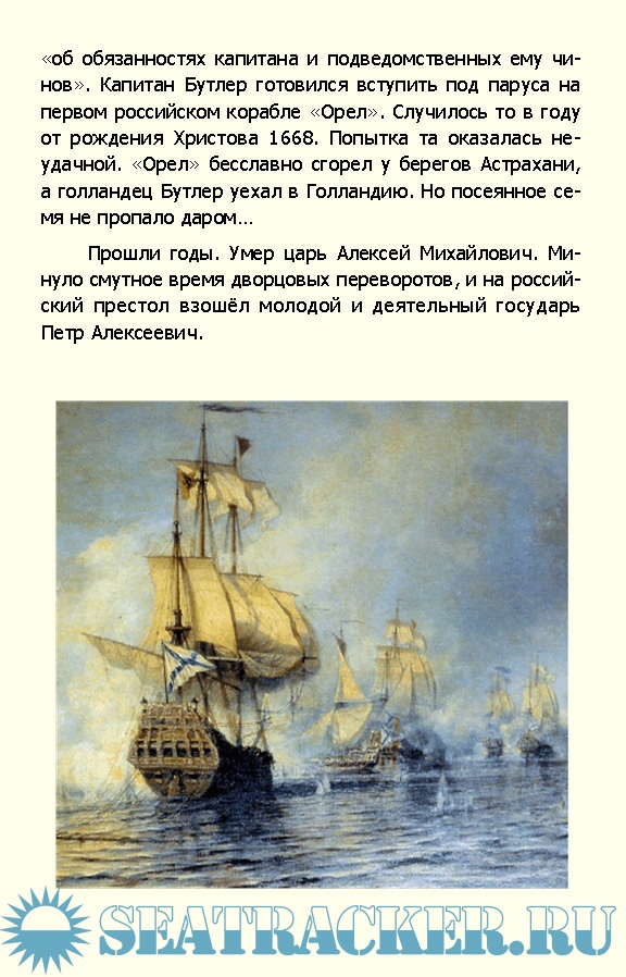 Описание: Наверное, ни один из законов России но имеет столь славной истории, как Морской устав Петра Великого. Принятый в 1720 году, он просуществовал до эпохи парового флота, да и в последующее время многие его главы так и остались неизменными.