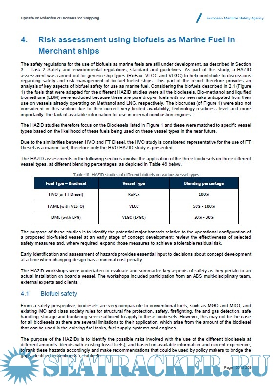 Description: This report provides an update on a previous study developed by EMSA on biofuels, examining the full range of biofuels, both liquid and gaseous, from the perspective of current production capacity, storage-and-distribution infrastructure and power-generation technologies. It also features techno-economic analyses and includes riskbased