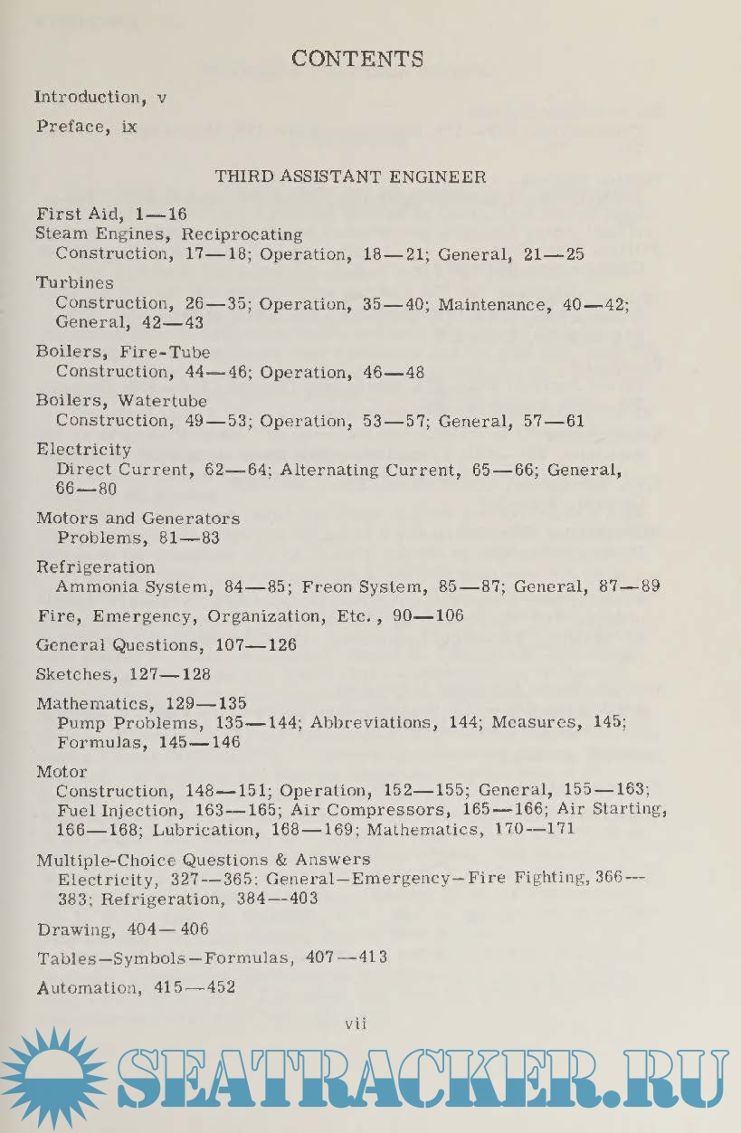 Description: The purpose of this publication is to make available to per­sonnel of the American Merchant Marine specimen questions and answers which will serve as a guide to appropriate study for li­censes in the various grades of marine engineer.