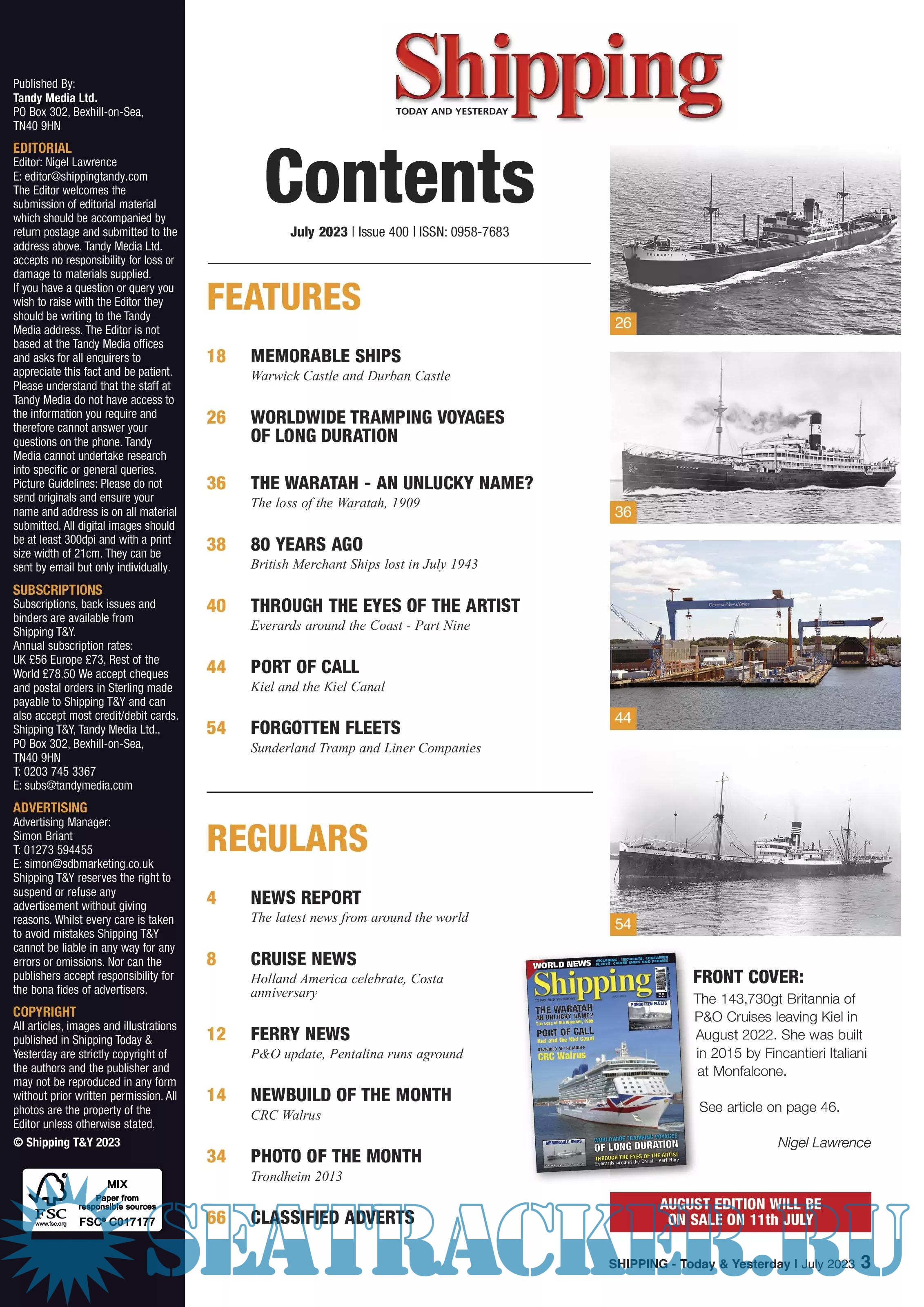 Shipping Today & Yesterday Magazine issue 400 - July, 2023