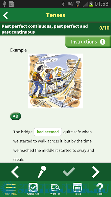 Year: 2018 Version: 2.1 (03.02.2018) Developer: Cambridge Learning Platform: Android 64-bit OS compatibility: unknown System Requirements: Android 5.1+ Localization: english Crack: Not needed Description: Advanced Grammar Activities Story. Improve your English grammar! This app helps advanced learners practise grammar points from the book Advanced Grammar in Use, from Cambridge University Press. Grammar in Use is the world's most popular grammar series for learners of English, used by millions of learners around the world. PLEASE NOTE: this app provides practice activities with audio, not the full Advanced Grammar in Use book. GET HELP WITH DIFFICULT AREAS OF GRAMMAR Contains exercises on grammar points which advanced learners of English (C1/C2) can find difficult, including ‘The future', ‘Modals', and ‘Reporting'. LOTS OF PRACTICE The app contains 170 activities and over 1,500 questions to help you improve your grammar. LISTEN TO AUDIO Hear phrases spoken aloud. Record your own voice, compare and improve your pronunciation. WORD LIST Tap a word to see the meaning. Definitions are written especially for learners of English. Cambridge University Press is a world-leading publisher of English learning materials. Expert authors write all of the content in our apps.