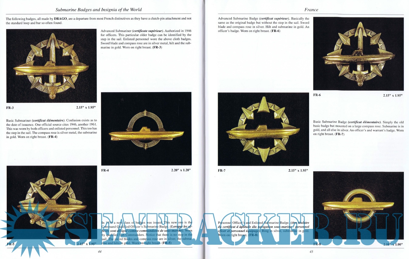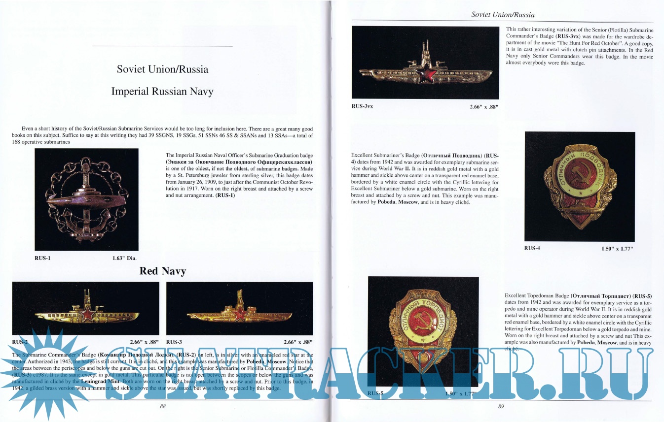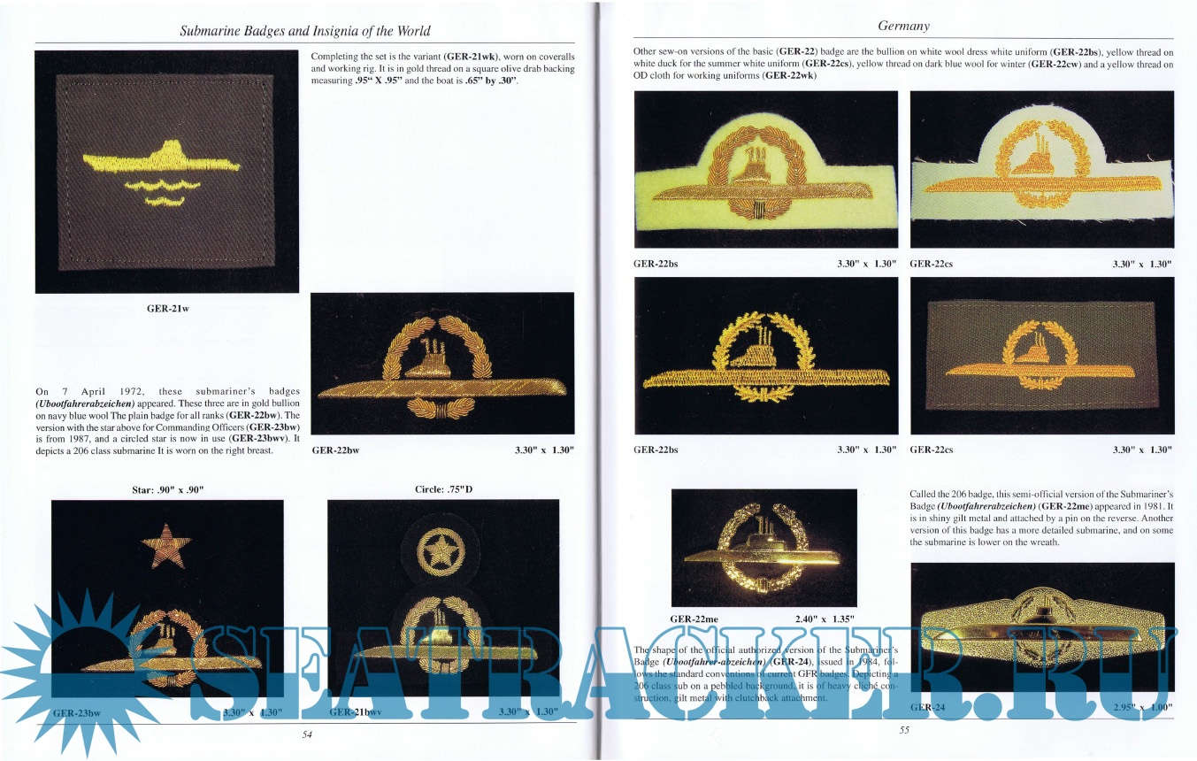 A complete compendium of the submarine badges of the world, dating from the Imperial Russian Naval Officer’s Submarine School Graduation Badge of 1909 to the new South Korean Submariner’s Badge issued in 1996.