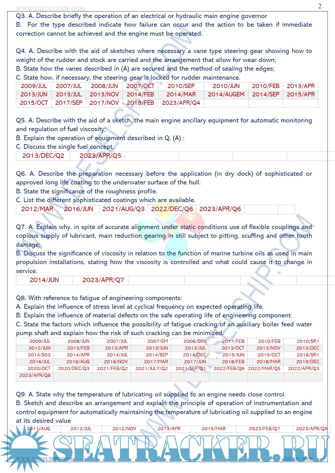Description: M.E.O. Class II Question Paper set for Mercantile Marine Department (MMD), D.G. Shipping India Exams.