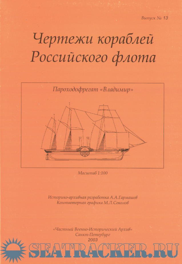 Описание: 13 листов чертежей пароходо-фрегата "Владимир" в масштабе 1:100