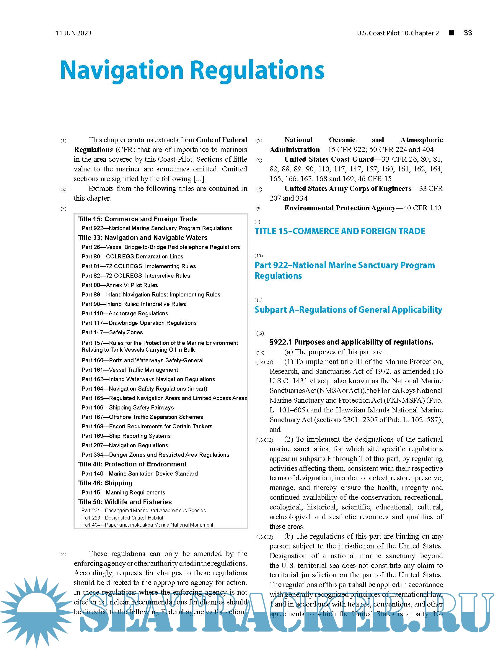 and traffic separation schemes, environmental protection, and other Federal laws.