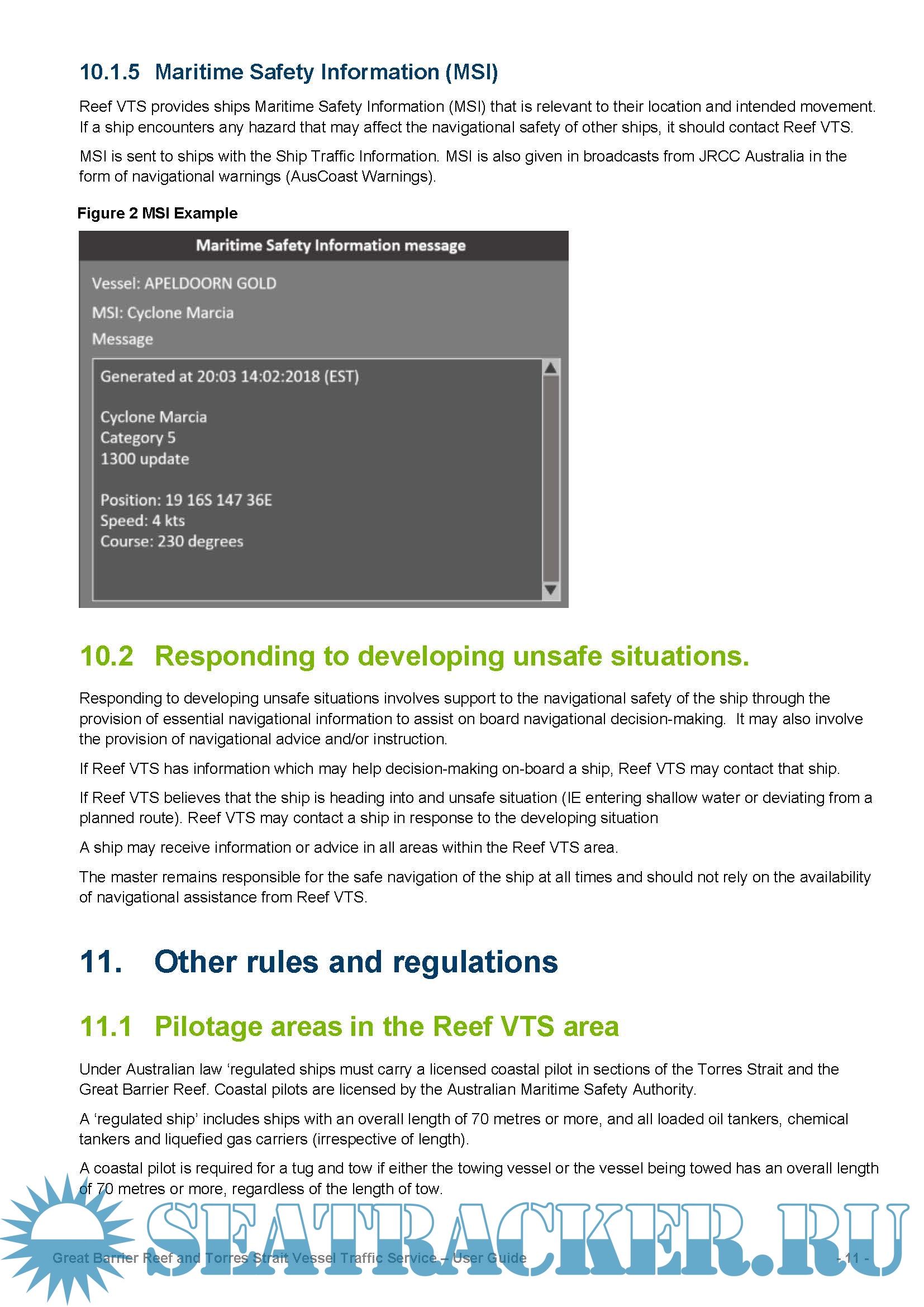 • the regulatory requirements for ships entering and transiting through the Reef VTS Area, including the mandatory reporting procedures, recommended shipping routes and compulsory pilotage areas;