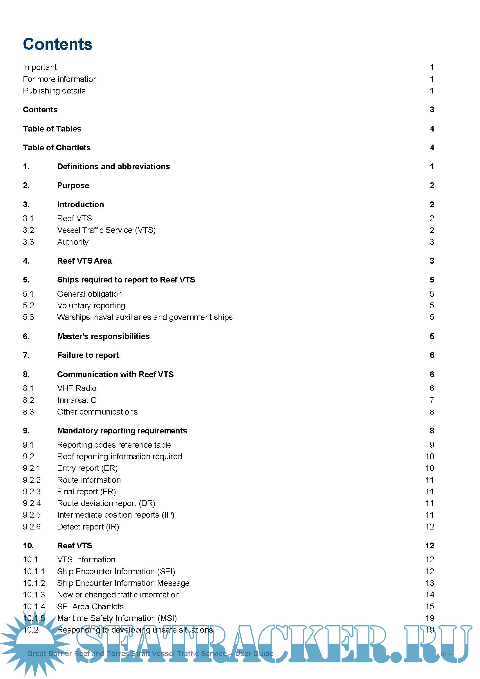 Year: 2022 Language: english Author: Steven J Hardaker Genre: Guide Publisher: Maritime Safety Queensland Edition: 10th Format: PDF Quality: eBook Pages count: 35 Description: The purpose of the Reef VTS user guide is to assist masters of ships transiting the Reef VTS area on the services provided by Reef VTS. It describes: • the regulatory requirements for ships entering and transiting through the Reef VTS Area, including the mandatory reporting procedures, recommended shipping routes and compulsory pilotage areas; • contact and communication requirements and • the vessel traffic services provided by Reef VTS. The information in this guide does not replace or change any rules in Australia’s Navigation Act 2012 which apply to waters within the Reef VTS Area (see section 4). If there is any difference between the information in the Reef VTS User Guide and the relevant laws, the relevant laws should be followed. The master of a ship is responsible for the ship’s operation and is responsible for the safe navigation of the ship under all circumstances. The information given here is a guide only. Any ship, owner, operator, charterer, master, or person directing the movement of a ship must still follow all relevant laws or regulations and must take any precautions required by ordinary seamanship or by the special circumstances of the case.