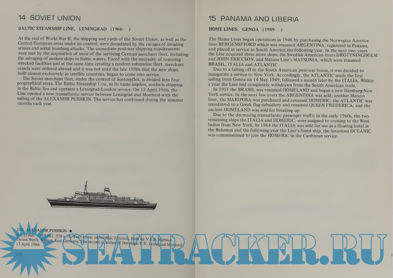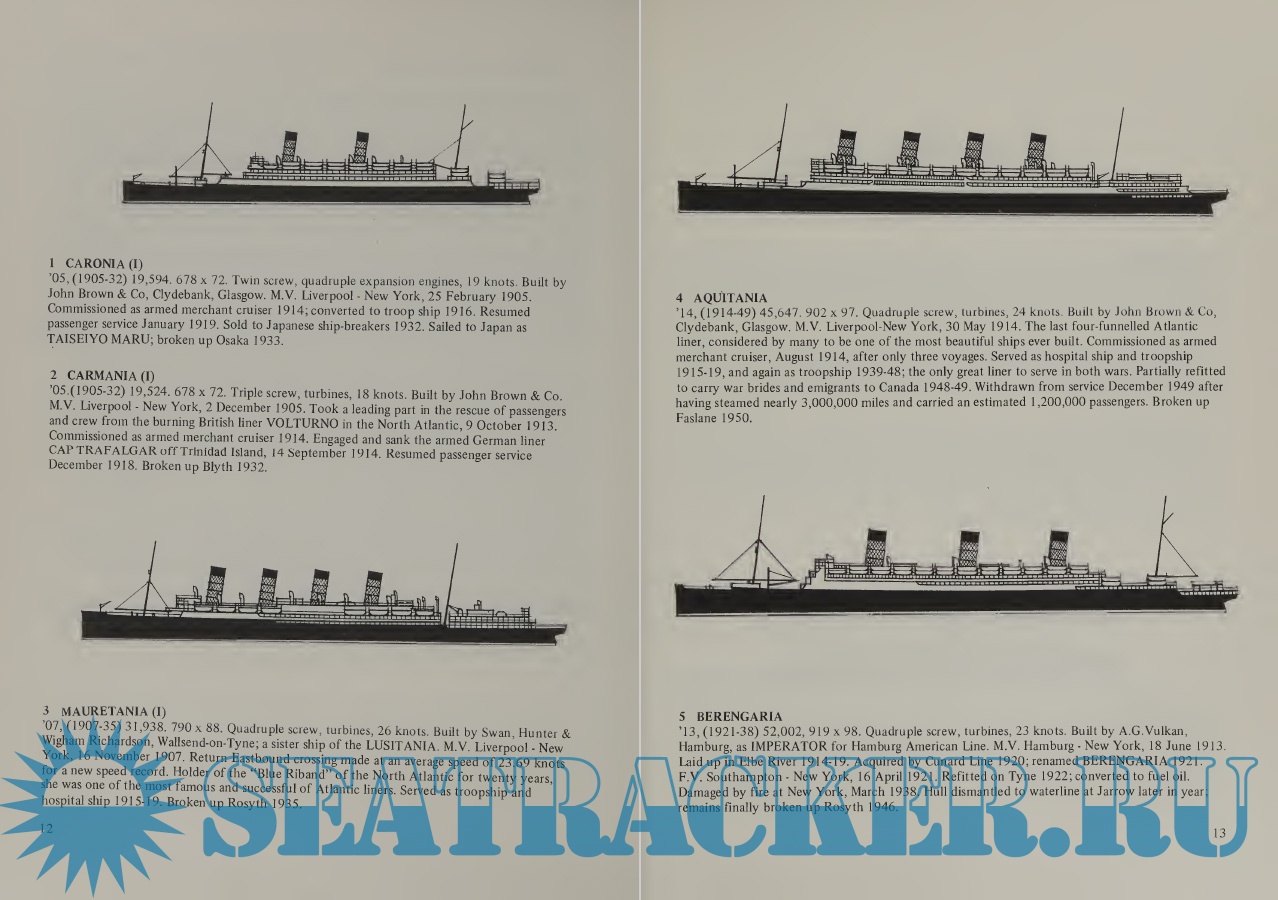 Year: 1972 Language: english Author: Emmons Frederick Genre: History Format: PDF Quality: Scanned pages Pages count: 168 Description: Brief biographies of the ships engaged in passenger service on the Atlantic route between 1925 and 1970.