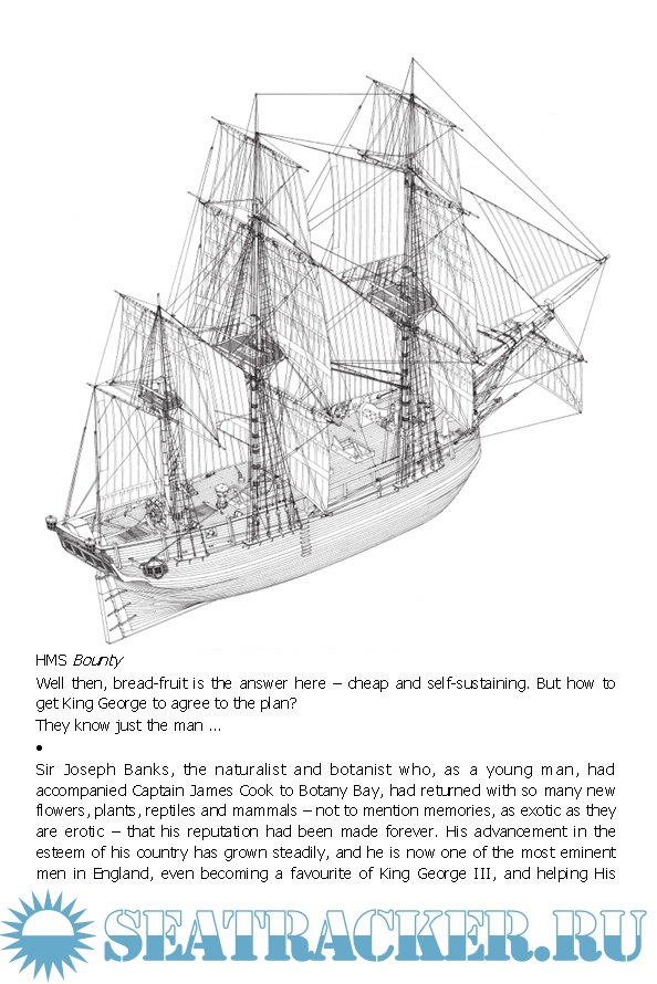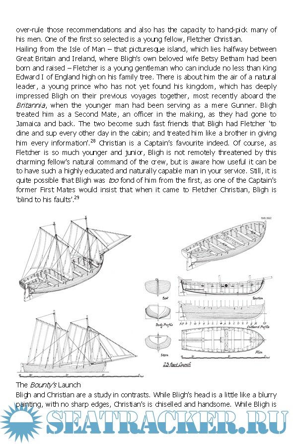 Commissioned by the Royal Navy to collect breadfruit plants from Tahiti and take them to the West Indies, the Bounty's crew found themselves in a tropical paradise. Five months later, they did not want to leave. Under the leadership of Fletcher Christian most of the crew mutinied soon after sailing from Tahiti, setting Captain William Bligh and 18 loyal crewmen adrift in a small open boat. In one of history's great feats of seamanship, Bligh navigated this tiny vessel for 3618 nautical miles to Timor.
