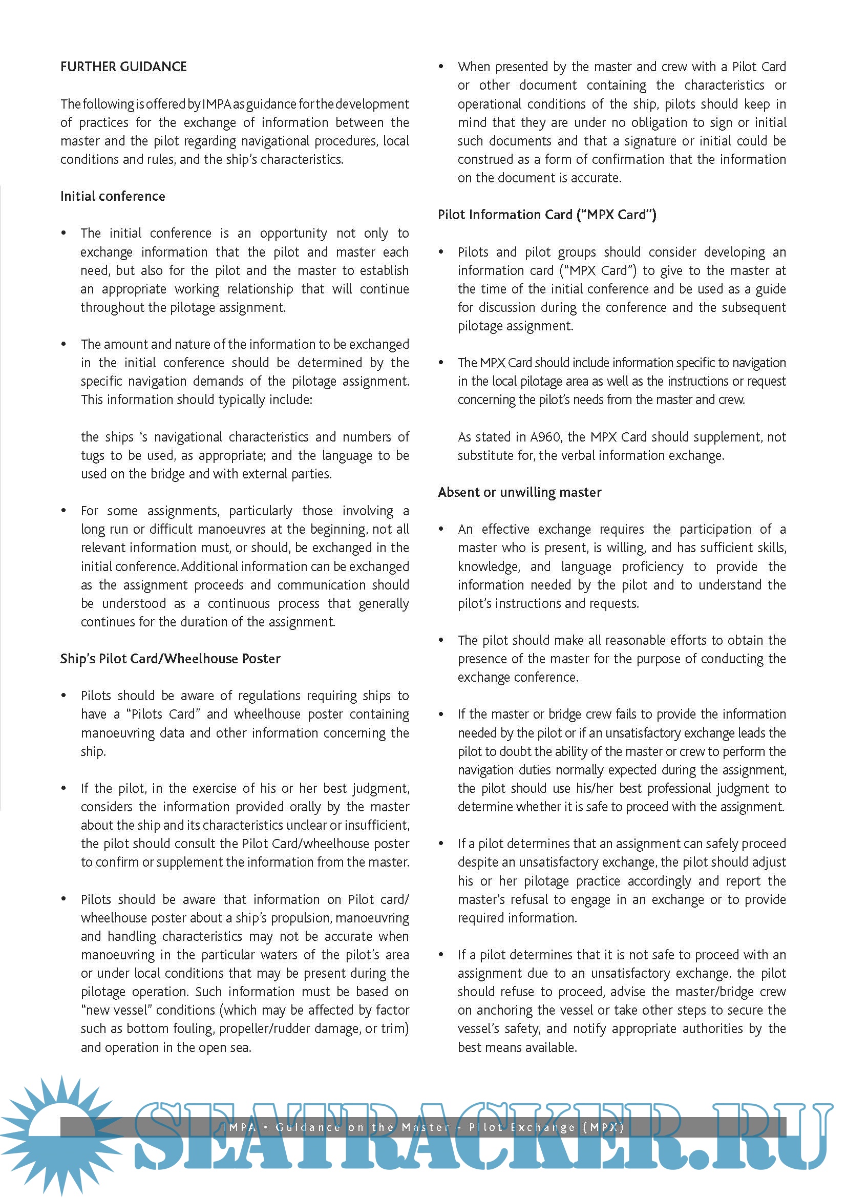 IMPA Guidance on the Master - Pilot Exchange (MPX)