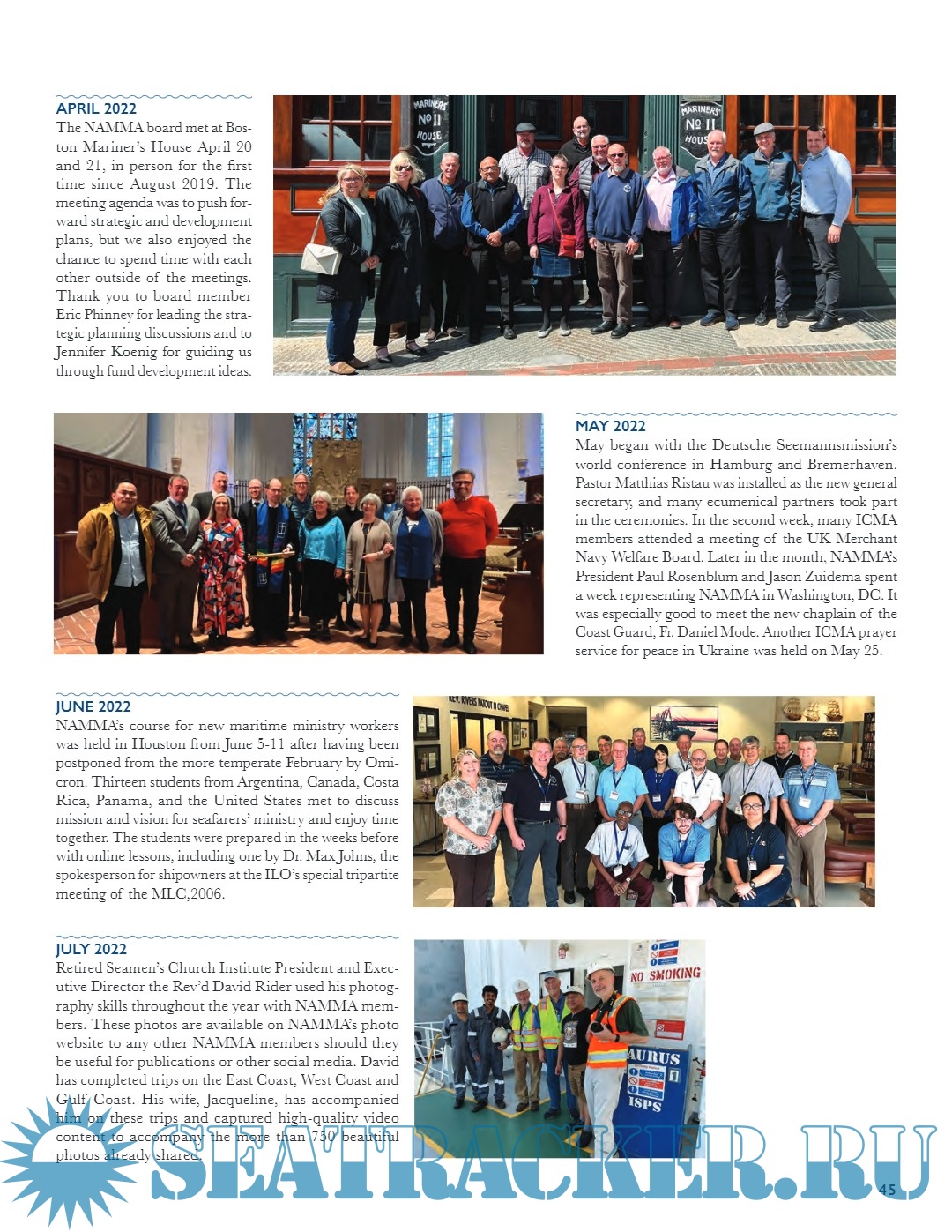 Year: 2022 Language: english Editor: Kevin Walker & Jason Zuidema Genre: Periodical (magazine) Publisher: North American Maritime Ministry Association Format: PDF Quality: eBook Pages count: Multiple Description: The MARE Report is a magazine for seafarers’ welfare professionals published by the North American Maritime Ministry Association to discuss issues affecting seafarers’ welfare providers and their supporters.