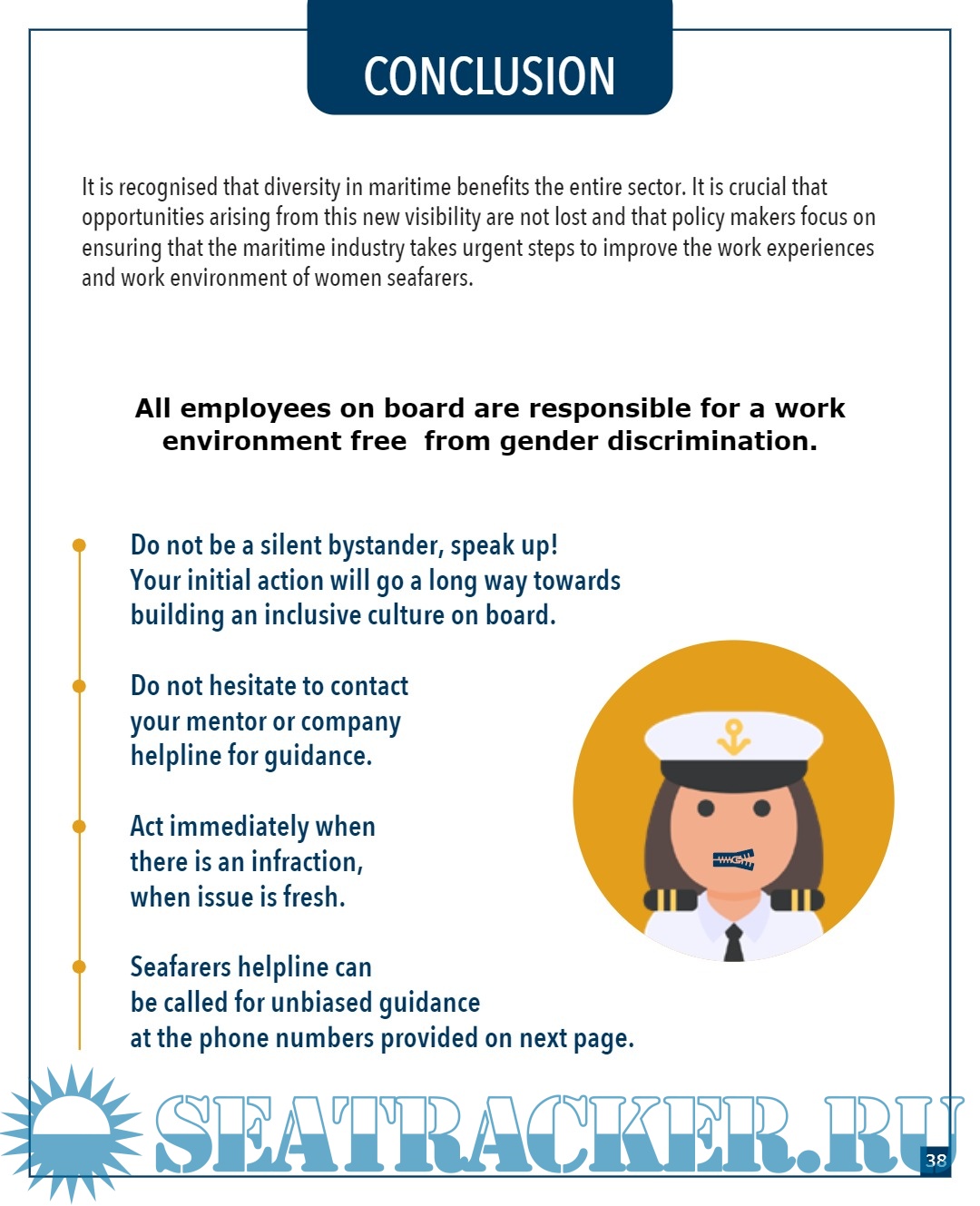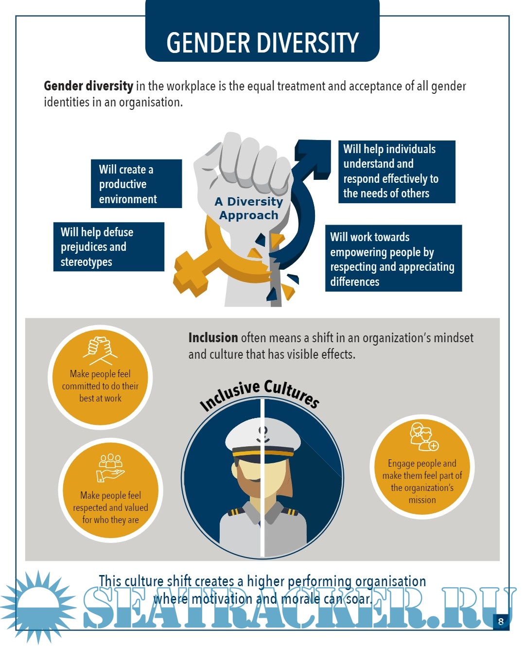 Year: 2022 Language: english Author: Sanjam Sahi Gupta, Delna Shroff & Parnita Rasa Genre: Guide Publisher: Anglo Eastern Maritime Training Centre (AEMTC) Edition: 2nd Format: PDF Quality: eBook Pages count: 42 Description: The maritime industry continues to be one of the least diversified sectors in terms of gender inclusivity, despite the numerous opportunities available to women. A need is felt to unlock the potential of the maritime sector by speeding up efforts to increase women’s participation. It also involves building a culture that ensures that the behaviours, attitudes, and systems are aligned with the diversity ideals that are being embraced. This edition of the Gender Diversity Booklet offers much needed guidance to welcome diversity. For women to be able to reach their full potential, the maritime industry needs to work together to ensure that the challenges that women currently face are adequately addressed. Inspired by narrations and experiences of women seafarers, through a Gender Diversity Survey launched in August 2020, respondents spanning across major continents helped identify a multitude of issues and challenges that women face in the maritime industry, in general, as well as in the aftermath of the pandemic. This survey sought to gather information from women seafarers about various issues related to discrimination, harassment, bullying, working conditions on board, health, and access to medical care, thereby providing an opportunity to the maritime industry to reflect, identifying some of the hurdles that women seafarers encounter. The booklet is intended for all seafarers; it offers guidance on addressing these challenges and building an inclusive culture where diverse individuals are respected and valued. It is part of an ongoing effort to bring about a shift in the individual mindset, promote gender sensitisation, and help raise the profile of women in all parts of the maritime sector. In this edition, the content substantiates guidance with drafting company policies that facilitate psychological safety for women seafarers, enabling an atmosphere for equality, diversity and inclusivity. Additional info: About the authors: 1) Sanjam Sahi Gupta: Director, Sitara Shipping Ltd. | Executive Board member, WMU | President Emeritus, WISTA India 2) Delna Shroff: Senior Psychologist Anglo-Eastern 3) Parnita Rasal: Psychologist Anglo-Eastern