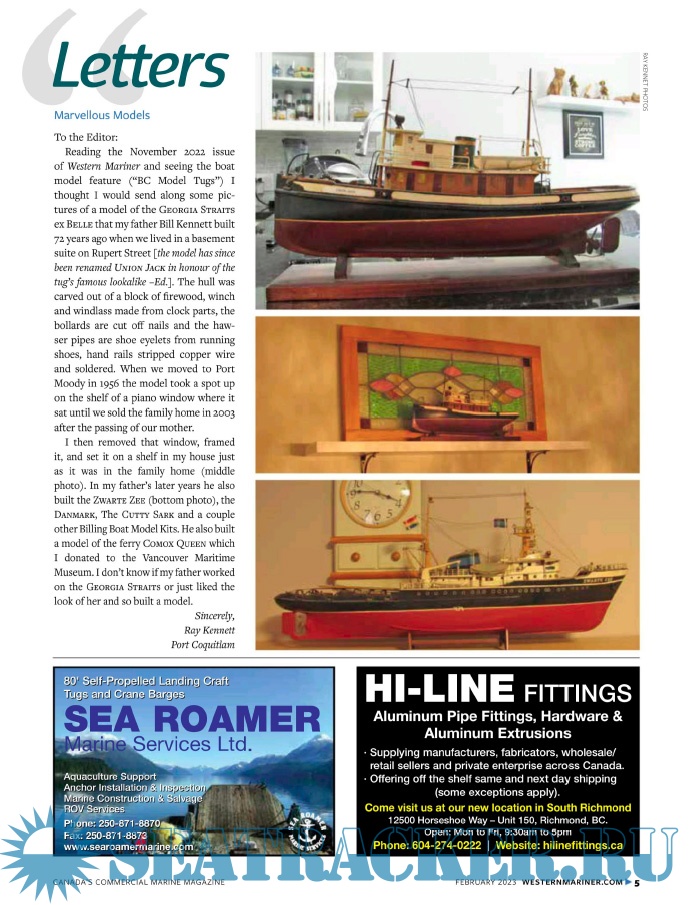 Year: 2023 Language: english Author: Somon Hill (Editor) Genre: Periodical (magazine) Edition: 2023-02 Format: PDF Quality: eBook Pages count: 56 Description: We reach more than 20,000 print and e-readers every month: vessel and fleet owners, boat builders and repairers, captains and crews on tugs, crew boats, ferries, workboats, fishing vessels and the businesses and people who support and supply them. Our writers and editors travel the coast to provide informative feature articles on the working waterfront. Our columnists offer insights into marine legal issues, ports and terminals, and entertainment and education for marine professionals.