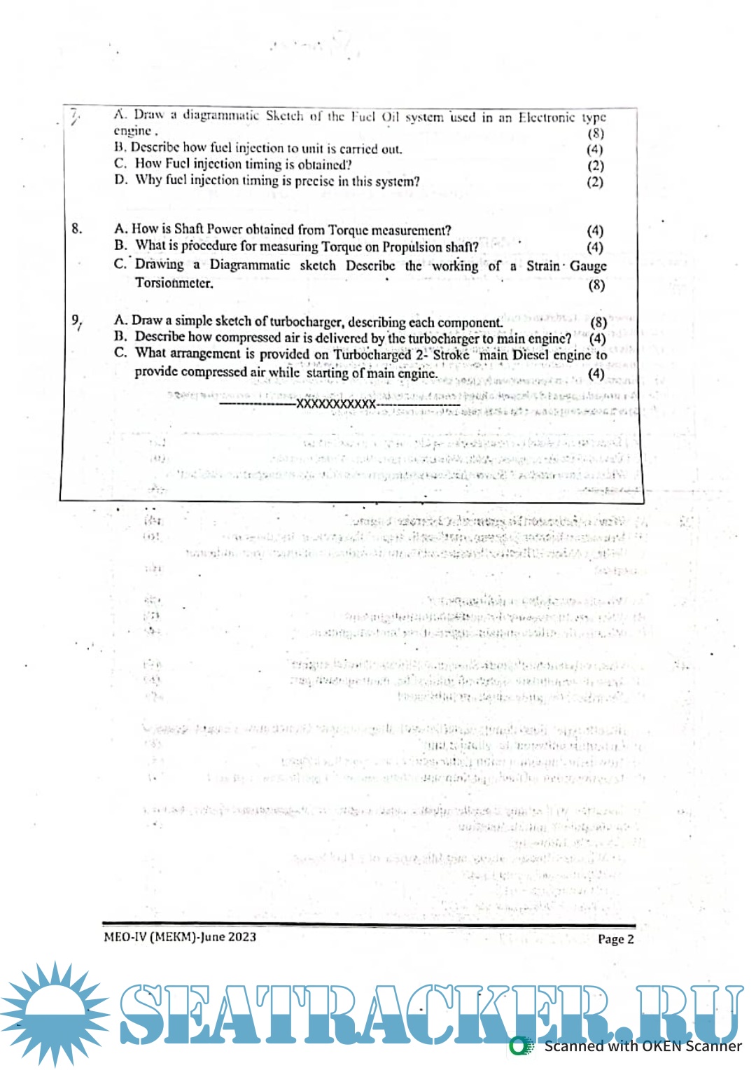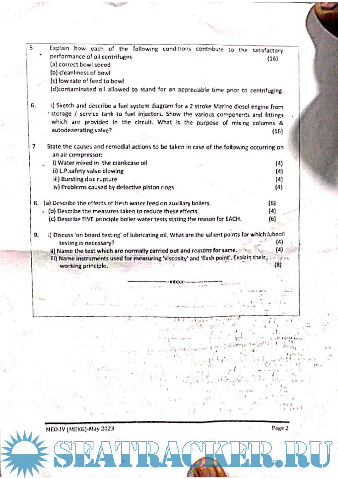 Question Paper (updated March 2023) for M.E.O. Class IV Examinations, India - D.G. Shipping, India…