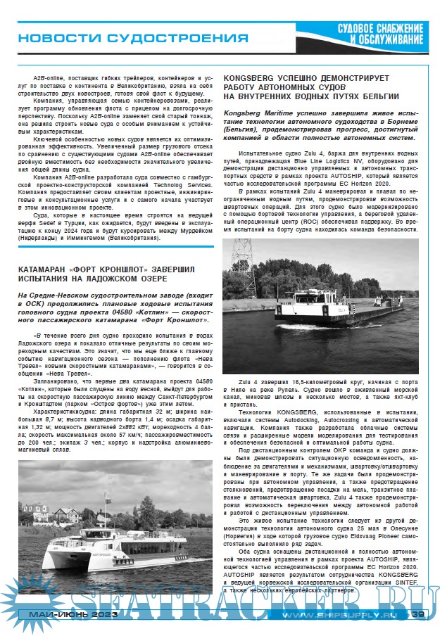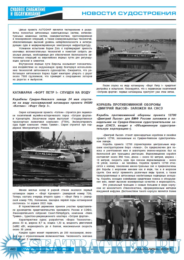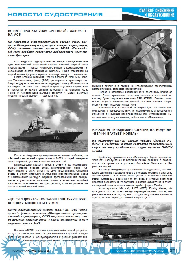 Описание: "Судовое снабжение и обслуживание" - периодический информационный бюллетень, издается с 1999 года и в настоящее время по праву занимает одно из ведущих мест среди специализированных отраслевых печатных изданий.Бюллетень стал надежным маркетинговым инструментом для технического менеджмента судостроительных, судоремонтных и снабженческих компаний. Более 500 отечественных и зарубежных фирм рекламодателей успешно сотрудничают с журналом с целью расширения своего бизнеса.Бесспорным преимуществом является бесплатное распространение издания целевой адресной рассылкой: судостроительным и судоремонтным предприятиям; морским и речным портам; судовладельцам морского, речного, промыслового флота; производителям и поставщикам судового оборудования, снабжения и материалов; предприятиям обслуживания флота (всего более 9000 компаний РФ).В журнале представлен весь спектр судового оборудования, комплектующих, запчастей, снабжения и материалов (с указанием контактных данных фирм производителей и поставщиков).
