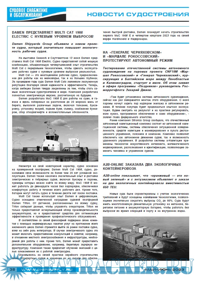 Год выпуска: 2023 Язык: русский Автор: Батраков В.Ф. (главный редактор) Жанр: Периодическое издание (журнал) Формат: PDF Качество: Изначально компьютерное (eBook) Количество страниц: 56 Описание: "Судовое снабжение и обслуживание" - периодический информационный бюллетень, издается с 1999 года и в настоящее время по праву занимает одно из ведущих мест среди специализированных отраслевых печатных изданий.Бюллетень стал надежным маркетинговым инструментом для технического менеджмента судостроительных, судоремонтных и снабженческих компаний. Более 500 отечественных и зарубежных фирм рекламодателей успешно сотрудничают с журналом с целью расширения своего бизнеса.Бесспорным преимуществом является бесплатное распространение издания целевой адресной рассылкой: судостроительным и судоремонтным предприятиям; морским и речным портам; судовладельцам морского, речного, промыслового флота; производителям и поставщикам судового оборудования, снабжения и материалов; предприятиям обслуживания флота (всего более 9000 компаний РФ).В журнале представлен весь спектр судового оборудования, комплектующих, запчастей, снабжения и материалов (с указанием контактных данных фирм производителей и поставщиков).