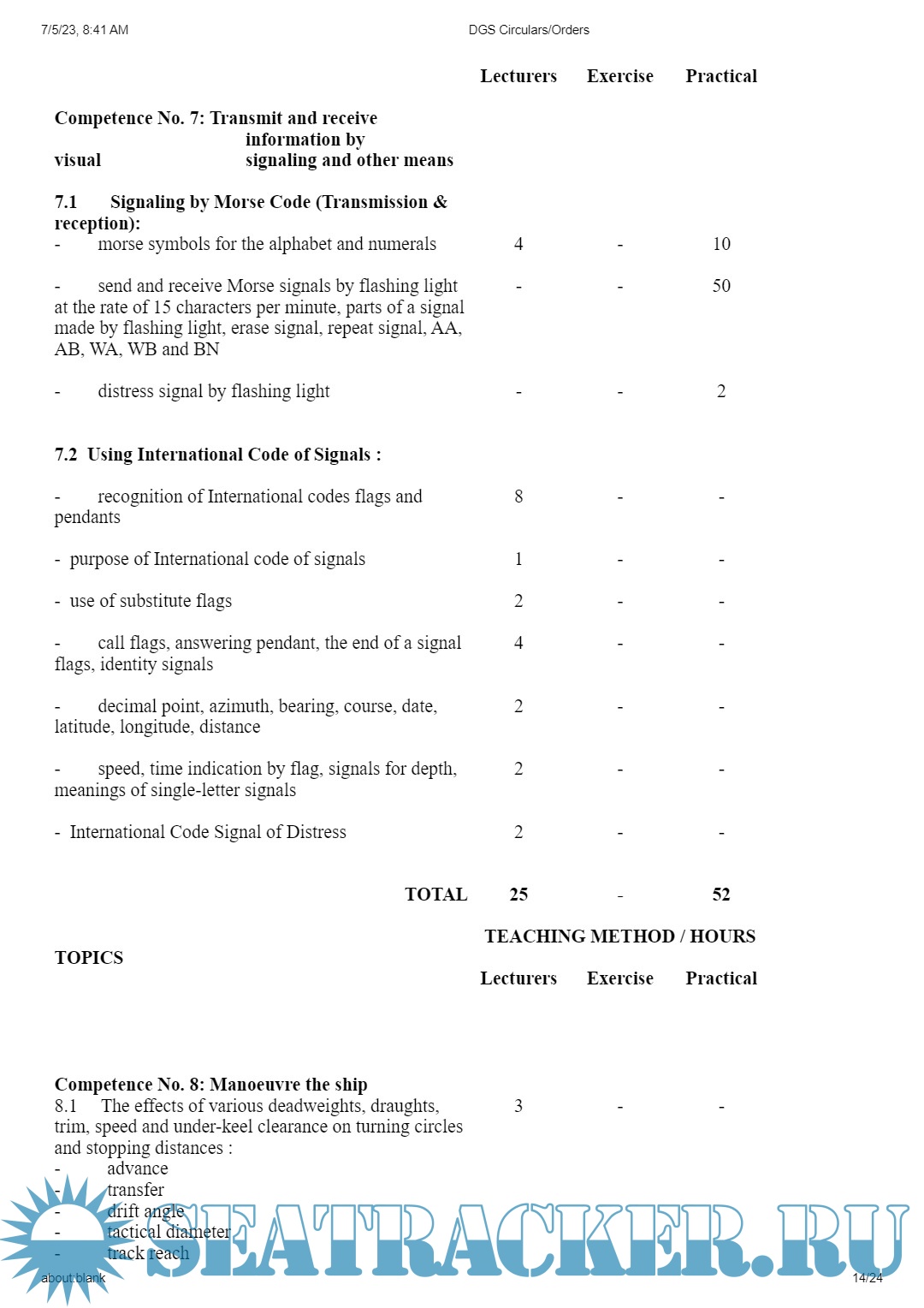 Syllabus for NWKO (NCV) Course of Mercantile Marine Department (MMD), India Examinations