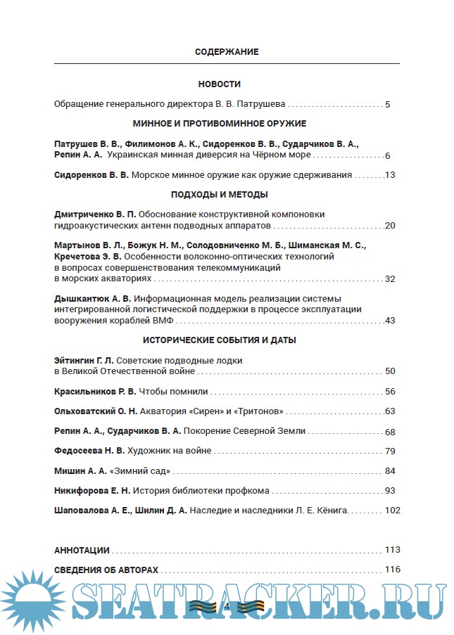 Описание: Научно-технический сборник «Подводное морское оружие» издаётся с 2003 года и является периодическим научно-техническим изданием. На страницах сборника публикуются аналитические материалы по актуальным научно-техническим вопросам проблемного и дискуссионного характера, раскрываются задачи и анализируются возможности создания новых образцов морского подводного оружия (МПО)