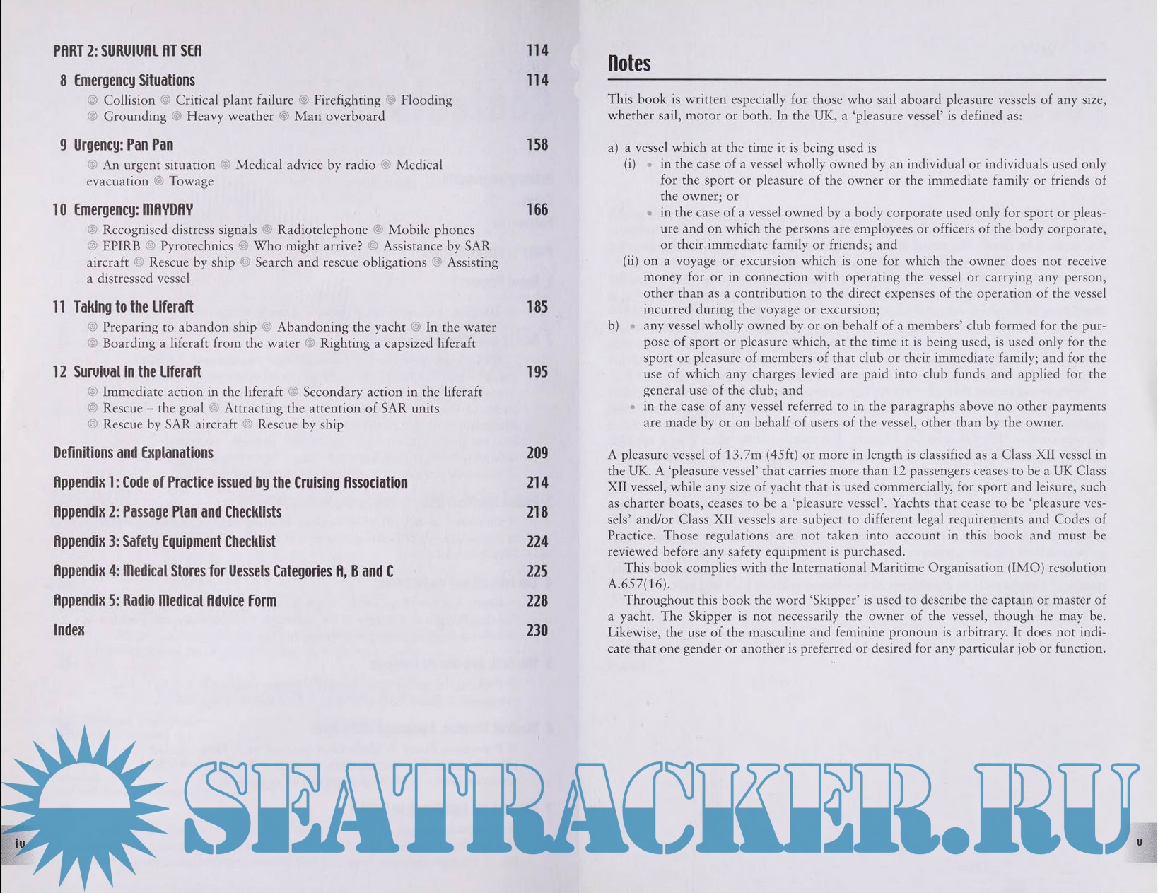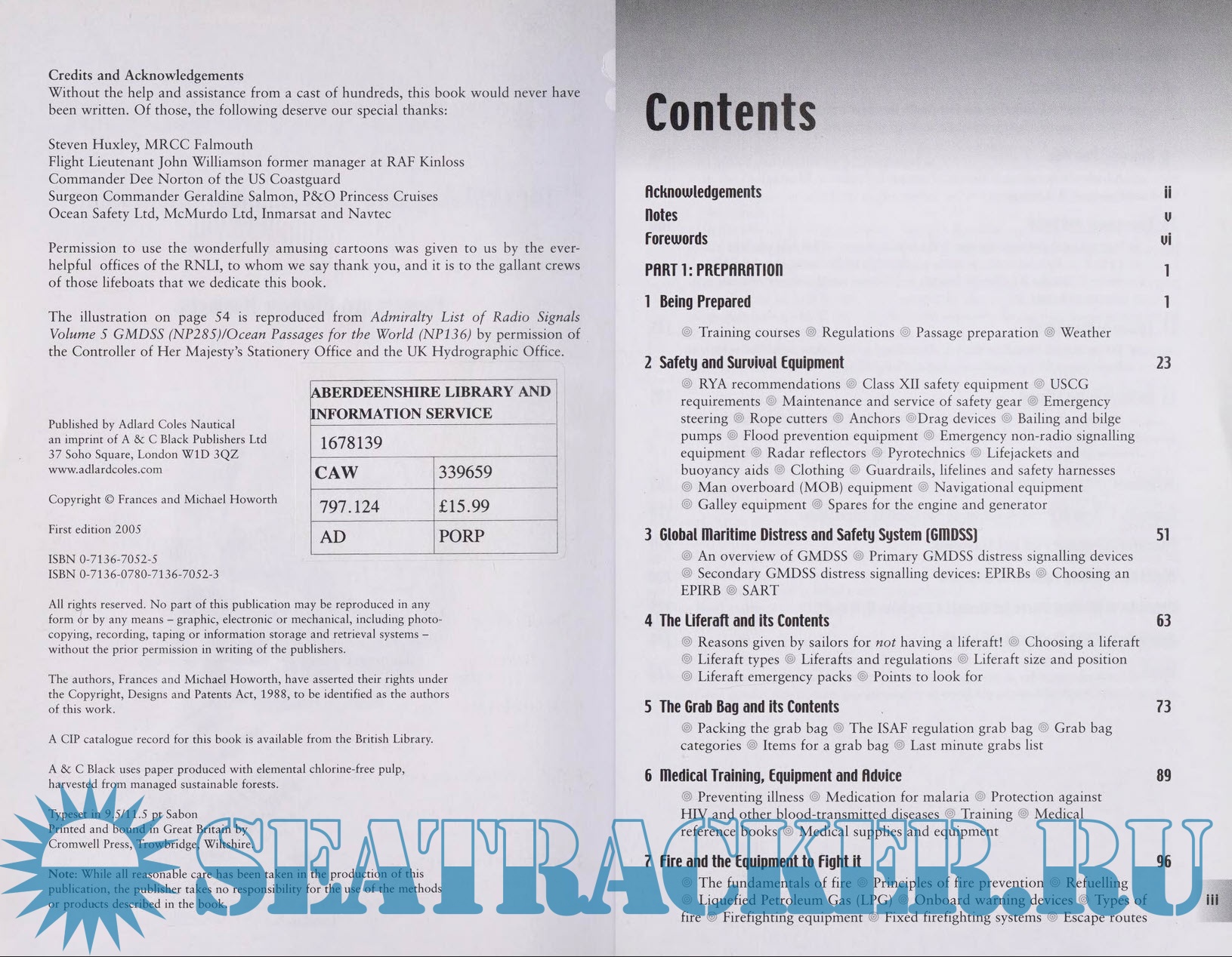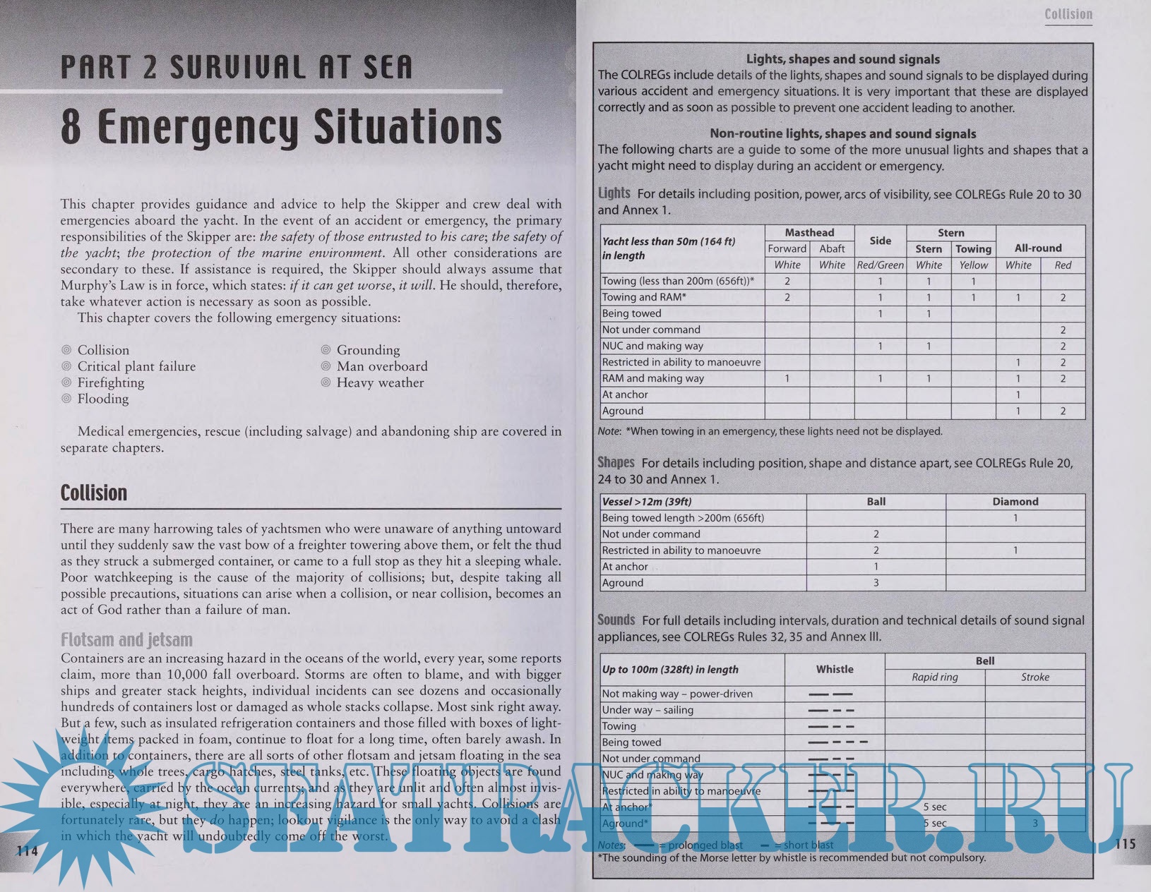 Includes chapters on safety and survival equipment, Global Maritime Distress and Safety Systems (GMDSS), liferafts, grab bags, medical equipment and advice, first aid and emergency treatment, abandoning ship, survival in a liferaft and rescues at sea.