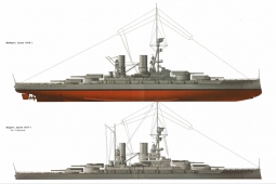 Описание: Эти супердредноуты стали венцом развития кайзеровского флота. В этих кораблях германским конструкторам удалось воплотить все последние достижения науки и техники, создав самые мощные линкоры Первой мировой войны. При сопоставимом с британскими дредноутами вооружении и бронировании, "Байерн" и "Баден" отличались гораздо более высокой боевой устойчивостью. Увы, из-за задержки в изготовлении башен и орудий они вступили в строй уже после главного морского сражения эпохи - Ютландского боя, в котором их английские сверстники принимали активное участие. И кто знает, как сложилась бы решающая битва Первой мировой, будь в распоряжении адмирала Шеера эти непревзойденные корабли... Но судьба распорядилась иначе, и германским супердредноутам пришлось действовать в основном на Балтике против русского флота, причем осенью 1917 года, в ходе Моонзундской операции, "Байерн" едва не погиб, подорвавшись на русской мине, и спасся лишь благодаря великолепно продуманной системе защиты от подводных взрывов. В конце концов, лучшие корабли Второго рейха разделили судьбу всего кайзеровского флота, будучи затоплены экипажами в 1919 году в Скапа-Флоу, чтобы не достаться победителям.